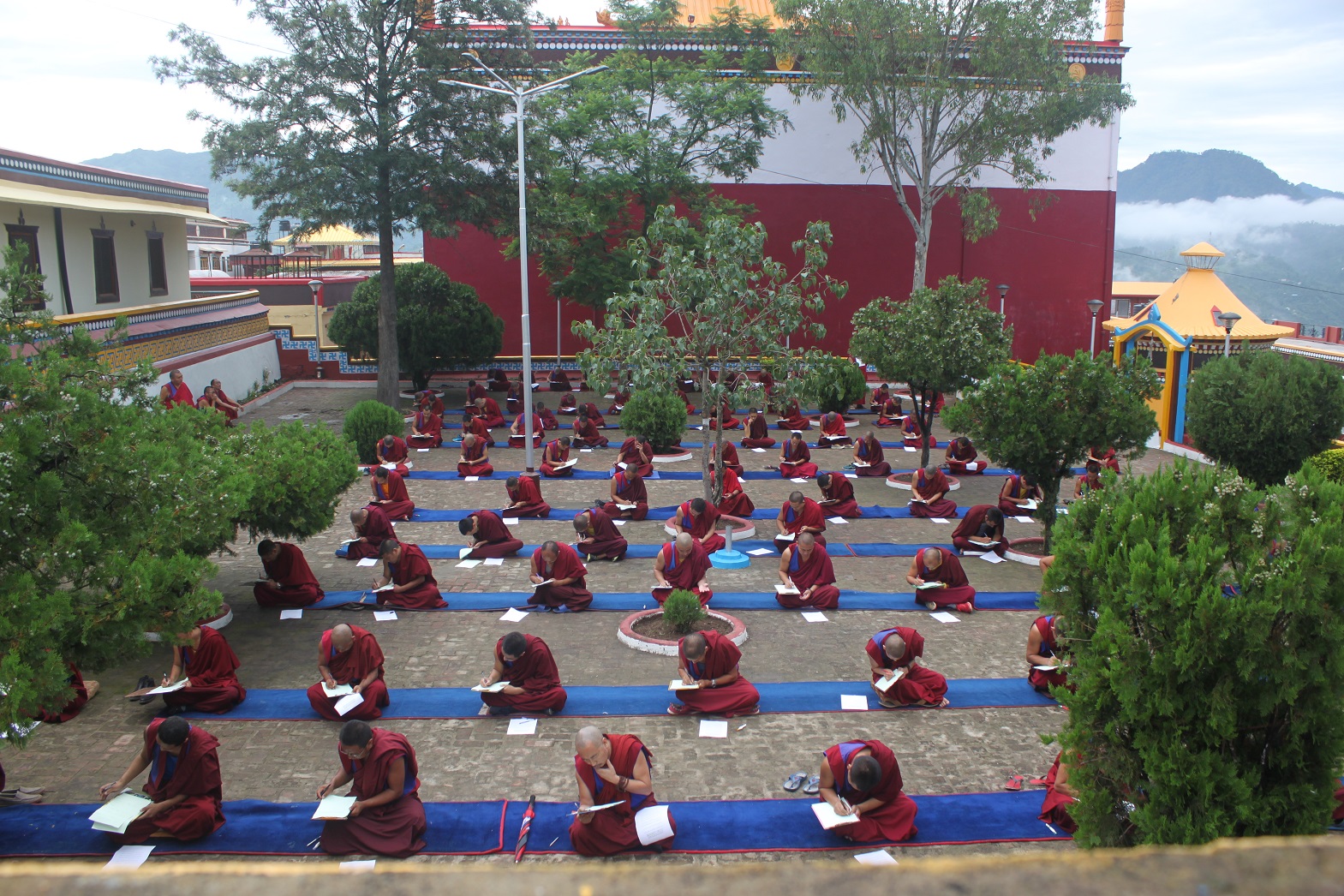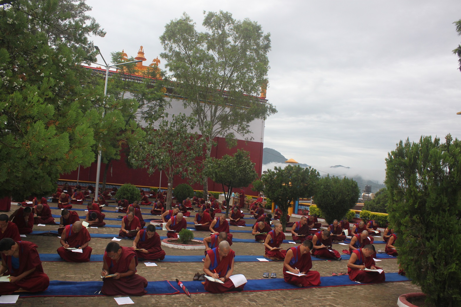 IMG_0113འབྱུང་ལྡན་༣༠༡བོད་མེ་སྤྲེལ་ལོའི་ཟླ་བ་ལྔ་པའི་གནམ་གང་སྟེ་ཕྱི་ལོ་ ༢༠༡༦ ཟླ་ ༨ ཚེས་ ༢ཉིན་ནས་གཡུང་དྲུང་བོན་གྱི་གདན་ས་ཆེན་མོ་༧དཔལ་གཤེན་བསྟན་སྨན་རིའི་གླིང་གི་ གཡུང་དྲུང་བོན་གྱི་བཤད་སྒྲུབ་འདུས་སྡེའི་ཟླ་དྲུག་སྔ་མའི་ཡིག་ཚད་དམ་ལོ་ཕྱེད་ཡིག་རྒྱུགས་ཆེན་མོ་དབུ་འཛུགས་གནང་ཡོད་པ་དང་། དེ་ཡང་གོང་ཚེས་ཉིན་གྱི་ཞོགས་པའི་ཕྱག་ཚོད་བདུན་པ་ཙམ་ནས་སྨན་རིའི་གླིང་གི་འཆད་ར་ཐོས་བསམ་དགའ་ཚལ་གླིང་དུ་འཛིན་གྲྭ་སོ་སོ་ལ་གཞུང་རྒྱུགས་བཏང་ཡོད་པ་དང་། ཕྱི་ཚེས་༣ཉིན་འཛིན་གྲྭ་སོ་སོ་ལ་སྐབས་བབས་ཀྱི་གཞུང་སོ་སོའི་འགྲེལ་རྒྱུགས་གཏོང་རྒྱུ་ཡིན་པ་རེད་འདུག