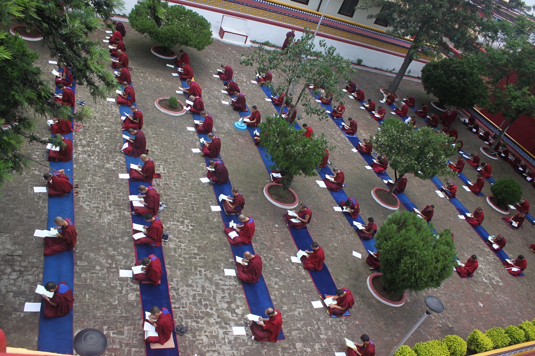 IMG_0128དང་པོ་ནི་ལོ་འཁོར་མའི་ནང་སྔོན་འགྲོ་དངོས་གཞི་གཉིས་བསྡོམ་གྱི་བདུན་རེའི་དམ་བཅའ་དྲུག་ལ་འབྱོར་ཐོ་མ་འཁོད་ཚེ་རྩོད་རྒྱུགས་མ་འཕྲོད་པ་དང་དེ་མིན་གྱི་སློབ་གཉེར་བ་རྣམས་རྩོད་རྒྱུགས་འཕྲོད་པའི་ཐོབ་ཆའི་ཨང་གྲངས་སྤྲད་རྒྱུ་དང་། གཉིས་པ་ནི་ལོ་རིམ་སོ་སོའི་གཞུང་ཆེན་ཁག་ལས་དཀའ་གནད་དང་དགོས་པ་ཆེ་ཁག་ལས་ལོ་རིམ་ རེར་དྲི་བ་བརྒྱད་ཅུ་ལས་མ་ཉུང་བར་བཟོ་སྐྲུན་གྱིས་ཟླ་བ་གཉིས་ཀྱི་སྔོན་སློབ་ གཉེར་བའི་ཕྱག་ཏུ་བཀྲམ་ནས་བརྡར་ཤ་ལེགས་པར་གཅོད་དགོས་པ་ཟད་དངོས་གཞི་རྩོད་རྒྱུགས་སྐབས་སུ་དྲི་བ་དེ་དག་༧སྐྱབས་རྗེ་དཔོན་སློབ་རིན་པོ་ཆེའི་མདུན་ཅོག་ ཐོག་ཤོག་སྒྲིལ་དུ་སྒྲིག་པ་ལས་སློབ་གཉེར་བ་སོ་སོས་བླངས་ནས་༧སྐྱབས་རྗེ་དཔོན་སློབ་རིན་པོ་ཆེའི་ཕྱག་ཏུ་འབུལ་བཞེས་ཀྱི་སྒྲོགས་སྦྱོང་མཛད་པ་ལྟར་ཚད་གསུམ་རིག་པའི་ལམ་ནས་རྩོད་པ་གནང་རྒྱུ་དང་རྩོད་པ་ལེགས་མིན་ལ་ལྟོས་ནས་ཨང་ཐོབ་སྤྲད་དགོས་པ་བཅས་ཡིན། ལོ་རིམ་སྤར་ཕྱོགས་ནི་རྩ་བའི་ཡིག་རྒྱུགས་ཀྱི་ཐོབ་ཆའི་ཨང་གྲངས་གཅིག་བརྒྱ་དགུ་ཅུ་ལོན་པ་མ་ཟད་ལོ་འཁོར་མའི་ནང་ དཔེ་ཁྲིད་དང་འཆད་རར་སོ་སོར་ཉིན་གྲངས་བརྒྱ་ཆ་བདུན་ཅུ་ལོན་པ་དང་སྔོན་འགྲོ་དངོས་གཞི་གཉིས་བསྡོམ་གྱི་དམ་བཅའ་དྲུག་ལས་མང་བ་མ་ཆད་པའི་ལོ་འཁོར་ཡིག་རྒྱུགས་ ཆེན་མོའི་གསར་བསྒྲགས་བྱུང་བའི་སློབ་གཉེར་བ་རྣམས་ལོ་རིམ་གོང་སྤར་བྱ་རྒྱུ་དང་།