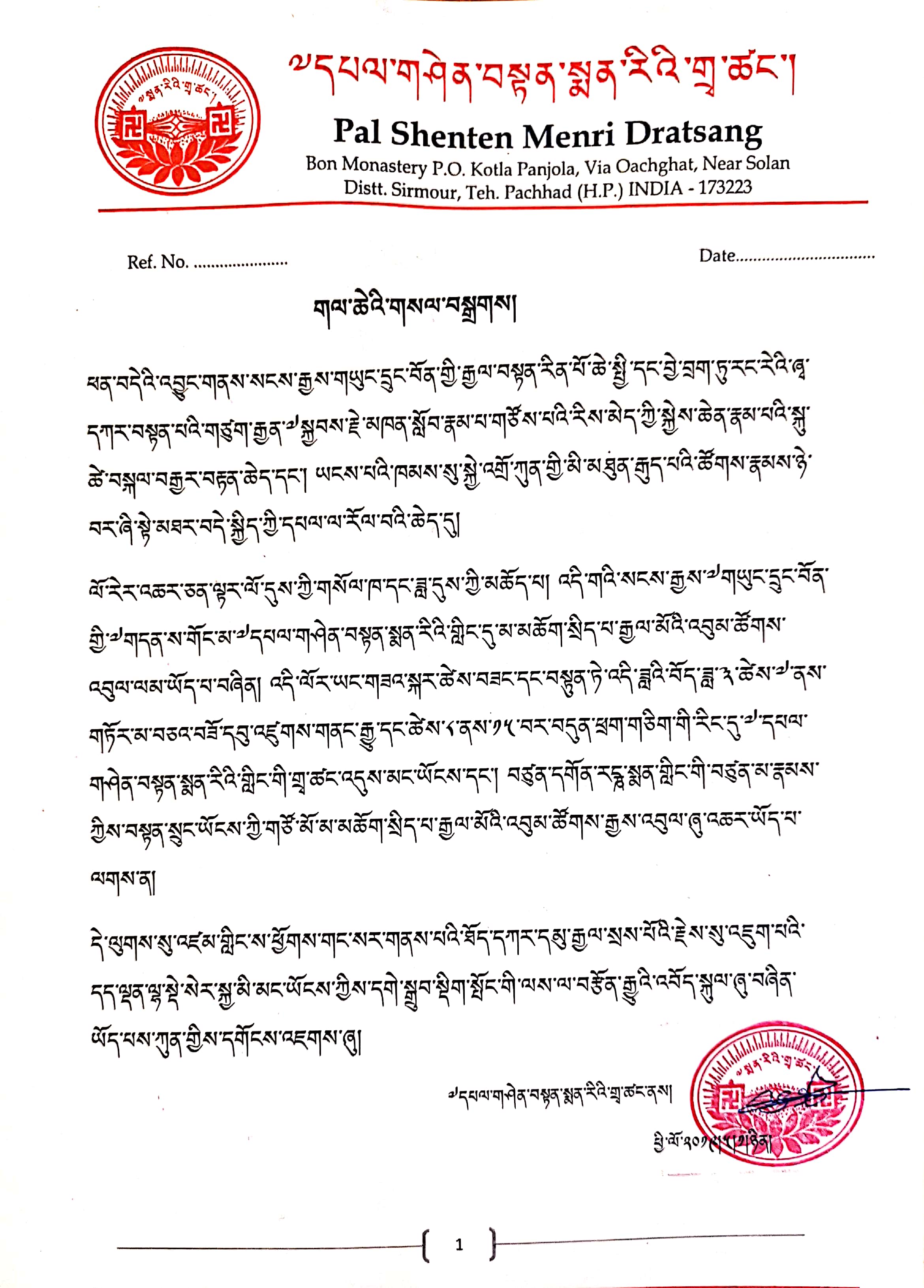 ལོ་རེར་འཆར་ཅན་ལྟར་ལོ་དུས་ཀྱི་གསོལ་ཁ་དང་ཟླ་དུས་ཀྱི་མཆོད་པ། འདི་གའི་སངས་རྒྱས་༧གཡུང་དྲུང་བོན་གྱི་༧གདན་ས་གོང་མ་༧དཔལ་གཤེན་བསྟན་སྨན་རིའི་གླིང་དུ་མ་མཆོག་སྲིད་པ་རྒྱལ་མོའི་འབུམ་ཚོགས་འབུལ་ལམ་ཡོད་པ་བཞིན། འདི་ལོར་ཡང་གཟའ་སྐར་ཚེས་བཟང་དང་བསྟུན་ཏེ་འདི་ཟླའི་བོད་ཟླ་༣ཚེས་༧ནས་གཏོར་མ་བཅའ་བཟོ་དབུ་འཛུགས་གནང་རྒྱུ་དང་ཚེས་༨ནས་༡༥བར་བདུན་ཕྲག་གཅིག་གི་རིང་དུ་༧དཔལ་གཤེན་བསྟན་སྨན་རིའི་གླིང་གི་གྲྭ་ཚང་འདུས་མང་ཡོངས་དང་། བཙུན་དགོན་རདྞ་སྨན་གླིང་གི་བཙུན་མ་རྣམས་ཀྱིས་བསྟན་སྲུང་ཡོངས་ཀྱི་གཙོ་མོ་མ་མཆོག་སྲིད་པ་རྒྱལ་མོའི་འབུམ་ཚོགས་རྒྱས་འབུལ་ཞུ་འཆར་ཡོད་པ་ལགས་ན།