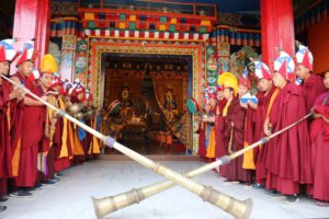 བོད་ཚེས་ཉེར་དགུ་ཉིན་རྒྱབ་ཡངས་པའི་རྒྱལ་ཁམས་ཀུན་ཏུ་གནས་པའི་སྐྱེ་འགྲོ་ཡོངས་ལ་འཚེ་བར་བྱེད་པ། ཕྱི་ལས་ལ་གྱུར་པའི་དགྲ། ནང་རྣམ་རྟོག་ལ་གྱུར་པའི་བགེགས། གསང་བ་མ་རིག་པ་ལ་གྱུར་པའི་བདུད་ཚོགས་རྣམས་བསྒྲལ་ནས་བླ་མ་ཡི་དམ་མཁའ་འགྲོ་བོན་སྐྱོང་དང་བཅས་པ་རྣམས་ཀྱི་ཐུགས་ཀློང་དུ་བསྟིམ་པའི་བརྡ་མཚོན་དབལ་ཕུར་བསྒྲལ་བསྟབ་ཀྱི་གར་འཆམ་དང། གཤེན་རབ་དགུ་འཆམ། གཏོར་རྒྱག་གི་འཆམ་སོགས་འཁྲབ་གནང་མཛད་པ་མ་ཟད།