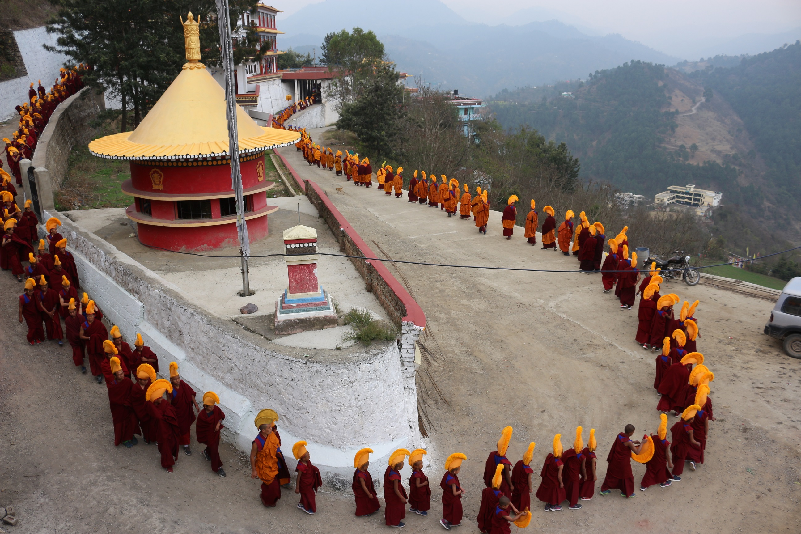 དེ་རྗེས་འདུས་མང་ཡོངས་གཡུང་དྲུང་བོན་གྱི་བཤད་སྒྲུབ་འདུས་སྡེའི་འཆད་ར་ཐོས་བསམ་དགའ་ཚལ་གླིང་དུ་འཛོམས་ནས་རྟེན་འབྲེལ་རྟགས་གསལ་གཏོང་གནང་མཛད་ཡོད་པ་རེད།