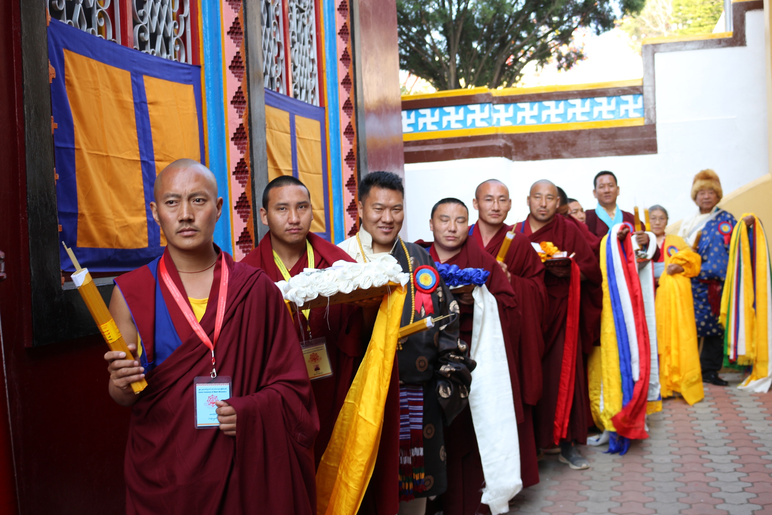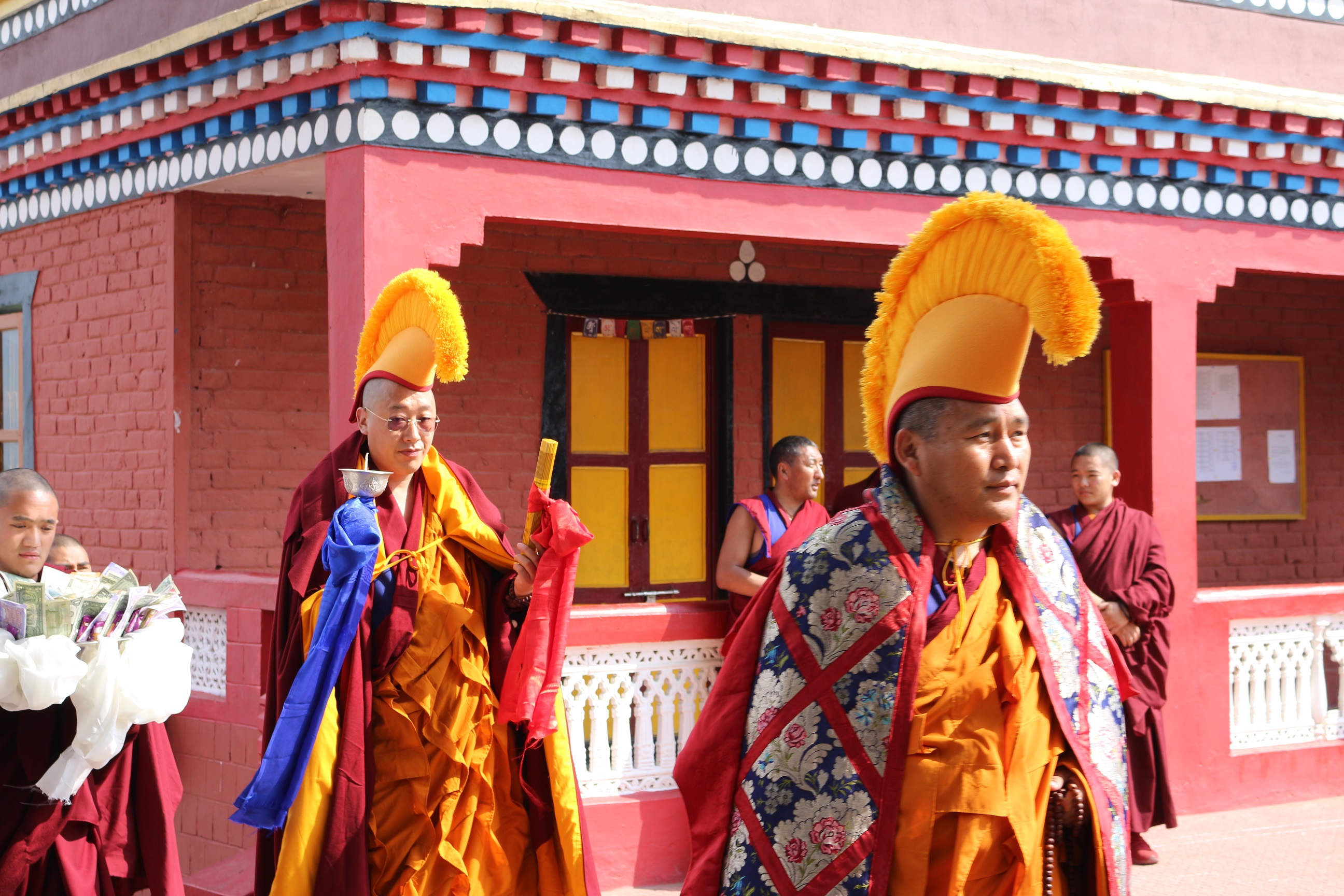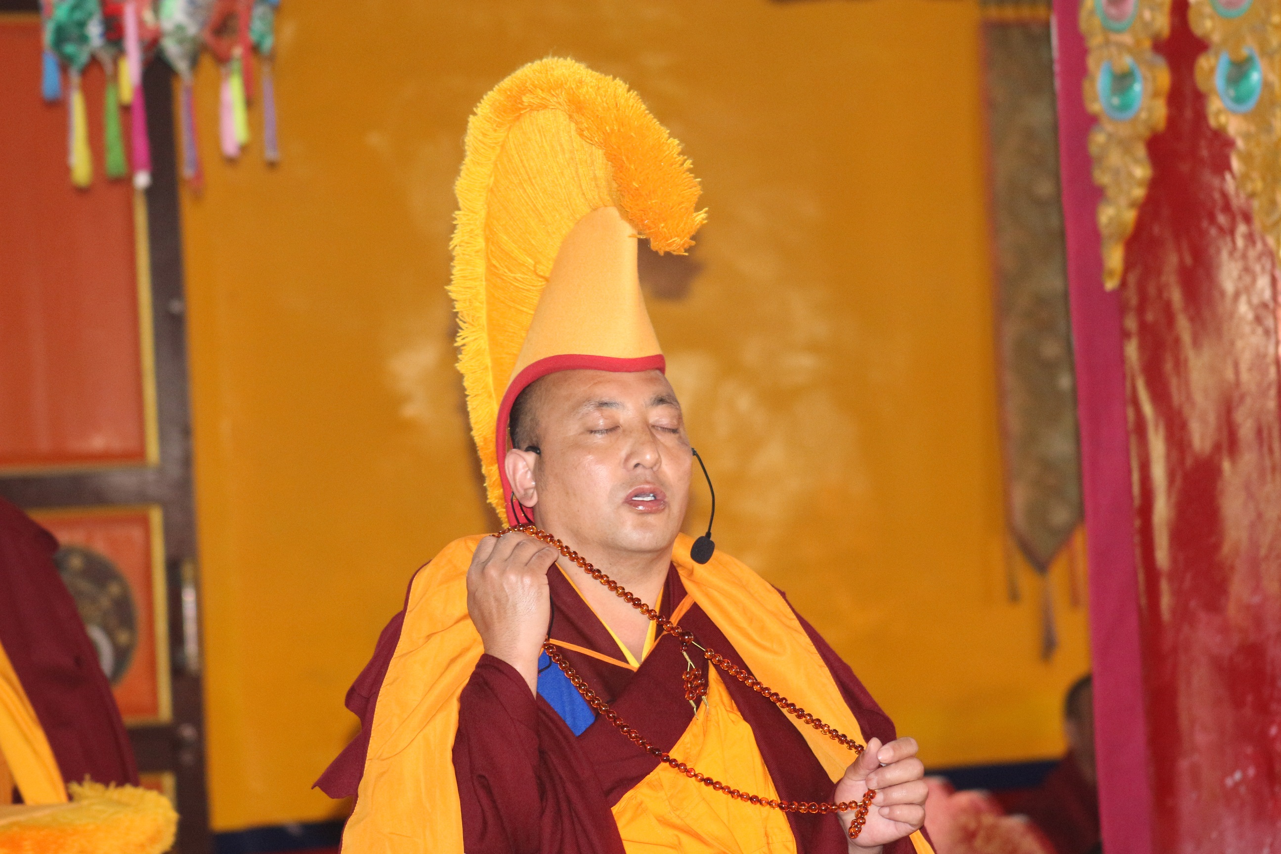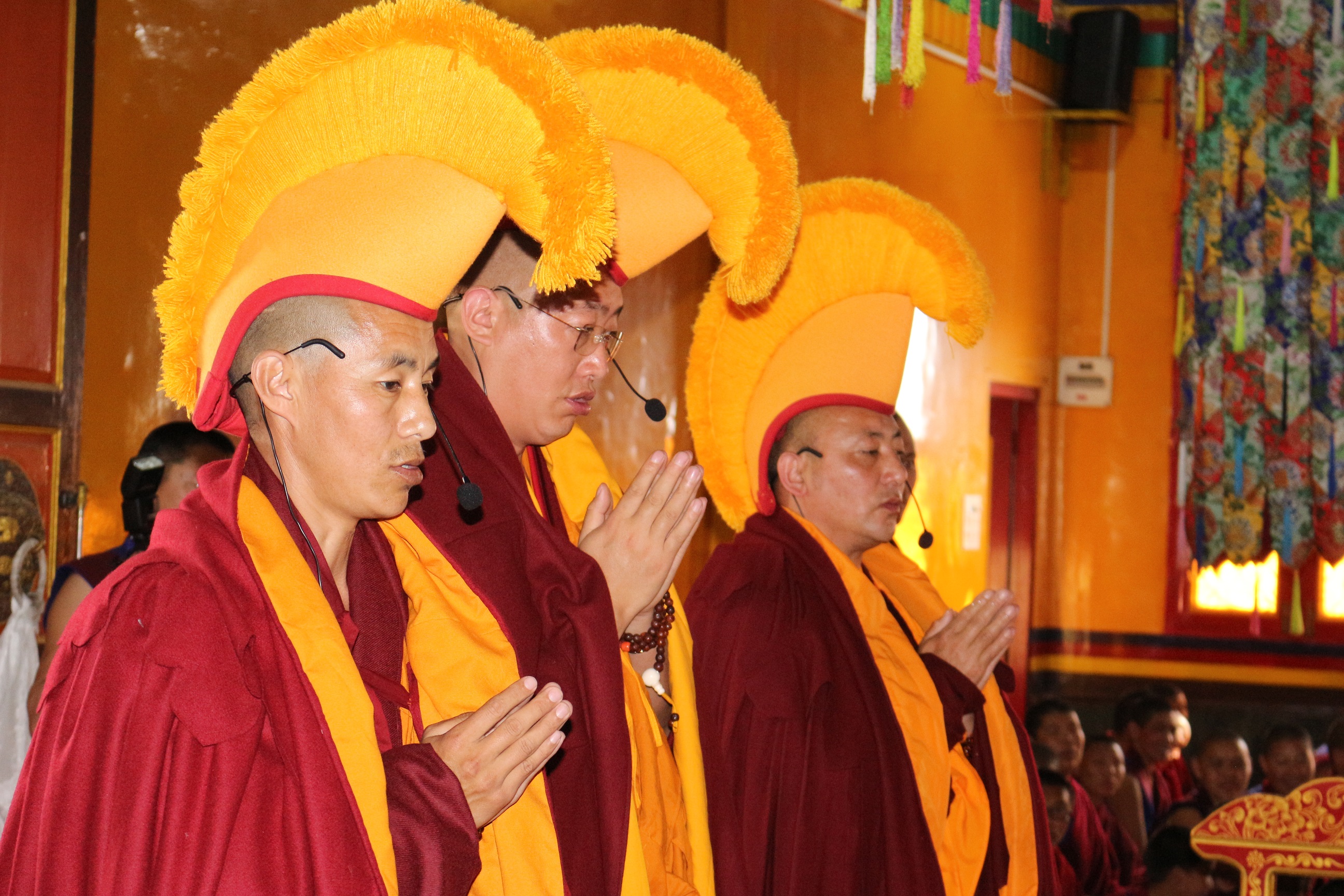 བཤད་སྒྲུབ་མཁན་སློབ་རྣམ་གཉིས་དང་དཀའ་ཆེན་དཀའ་ཆུང་བཅས་འཆམ་རའི་ཤར་ལྷོ་གཉིས་ནས་དུས་གཅིག་ཏུ་ཚོགས་ཁང་མདུན་དུ་ཕེབས་རྗེས་རིམ་ཅན་གྱིས་ཚོགས་ཁང་དུ་ཕེབས་ནས་ཁྲི་ལ་བཞུགས་གསོལ་དང་།འདུས་མང་ཡོངས་ནས་ཀུན་གསལ་བྱམས་མའི་སྔགས་བསྟོད་གྲུབ་རྗེས་འབྲས་སིལ་དང་གསོལ་ཇ་འདེགས་འབུལ་དང་སྦྲགས་གཏོང་སྒོ་ཆེན་མོའི་འགྱེད་གྲུབ་རྗེས།བཀའ་རམས་པ་རྒྱལ་རོང་ཁྲོ་སྐྱབས་མདོ་སྔགས་བླ་མེད་ཡིད་བཞིན་ནོར་བུའི་གླིང་གི་དབྲ་སྲས་དྲང་སྲོང་ཤེས་རབ་འོད་ཟེར་དང་། བཀའ་རམས་པ་ཟིང་ཆུ་སྐྱང་དགོན་ཕུན་ཚོགས་དར་རྒྱས་གླིང་གི་ཨ་ཡིག་དྲང་སྲོང་ཤེས་རབ་ཕུན་ཚོགས་དབང་རྒྱལ།