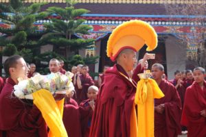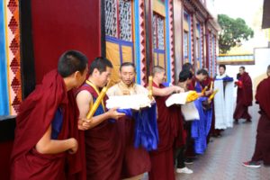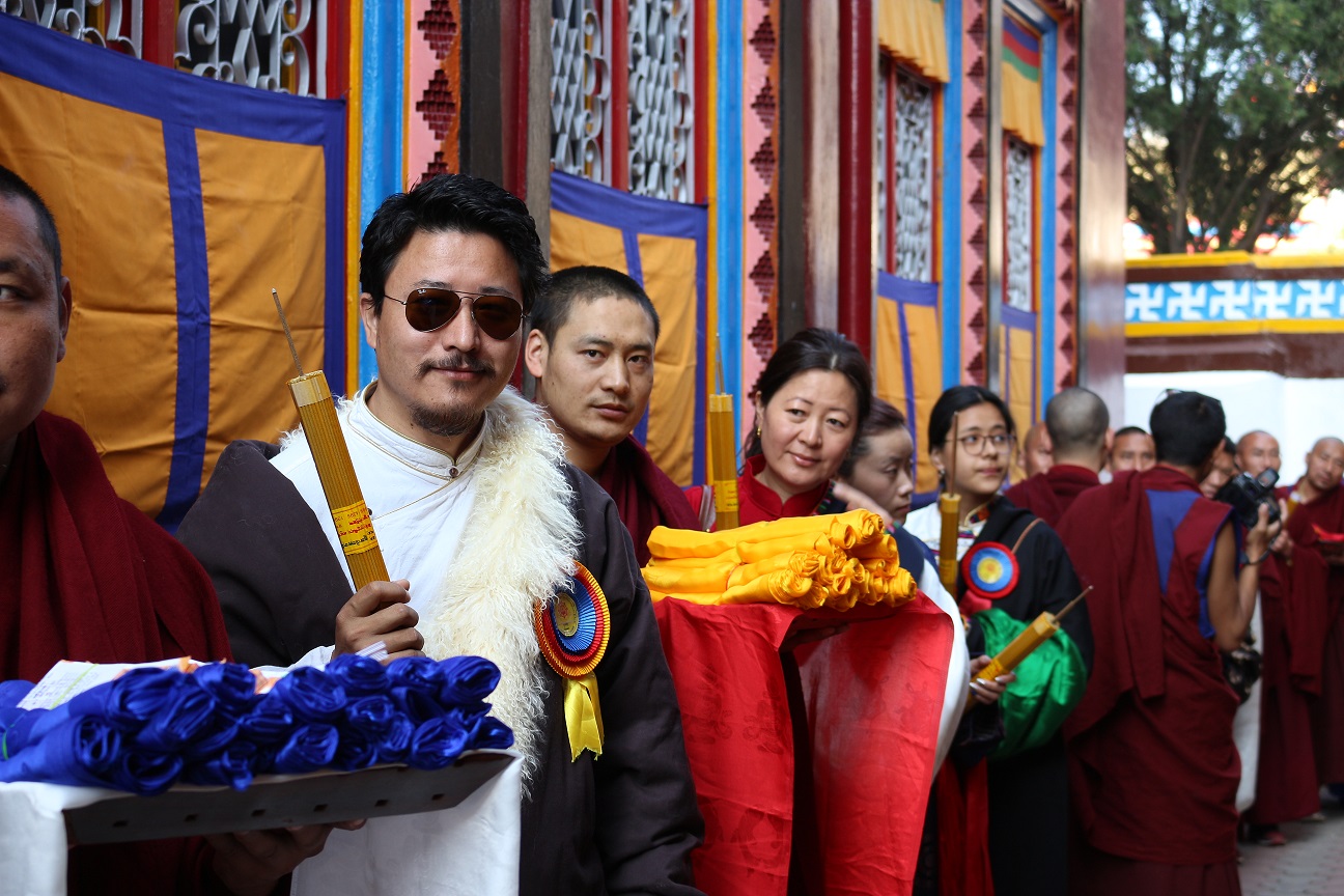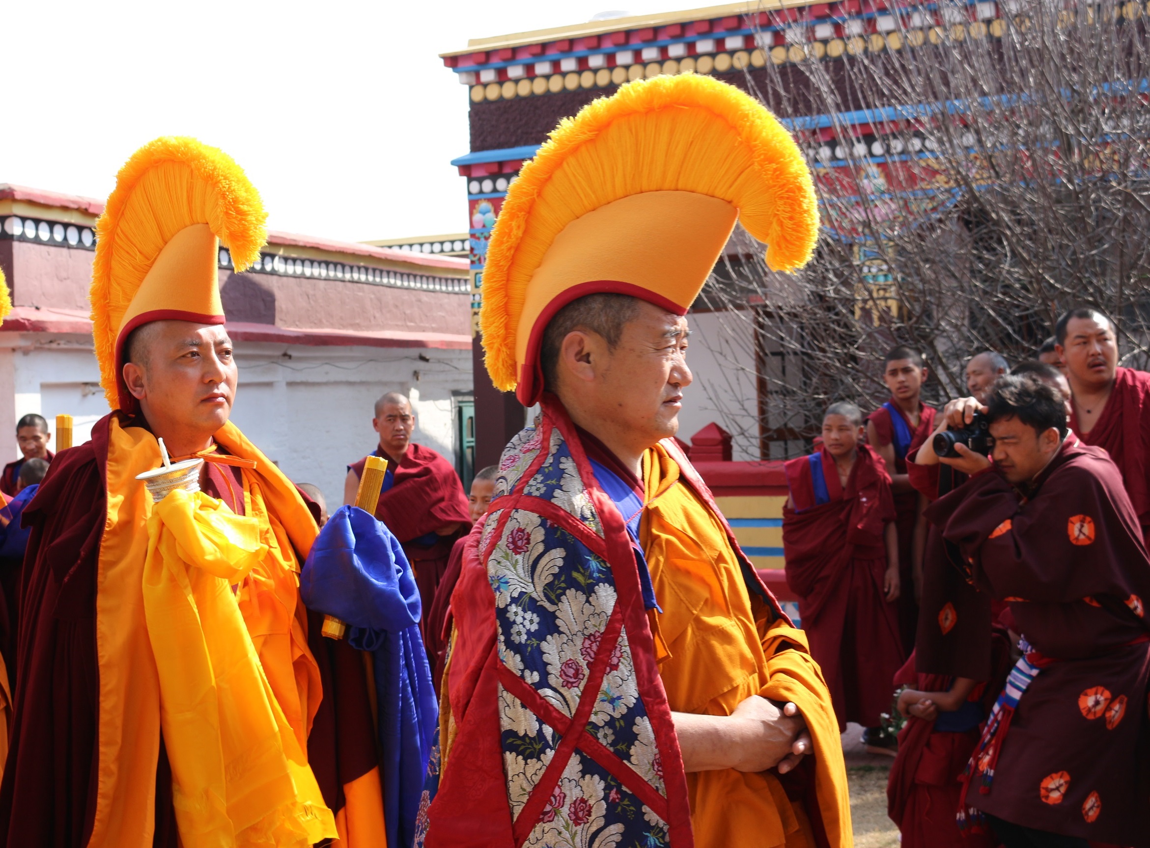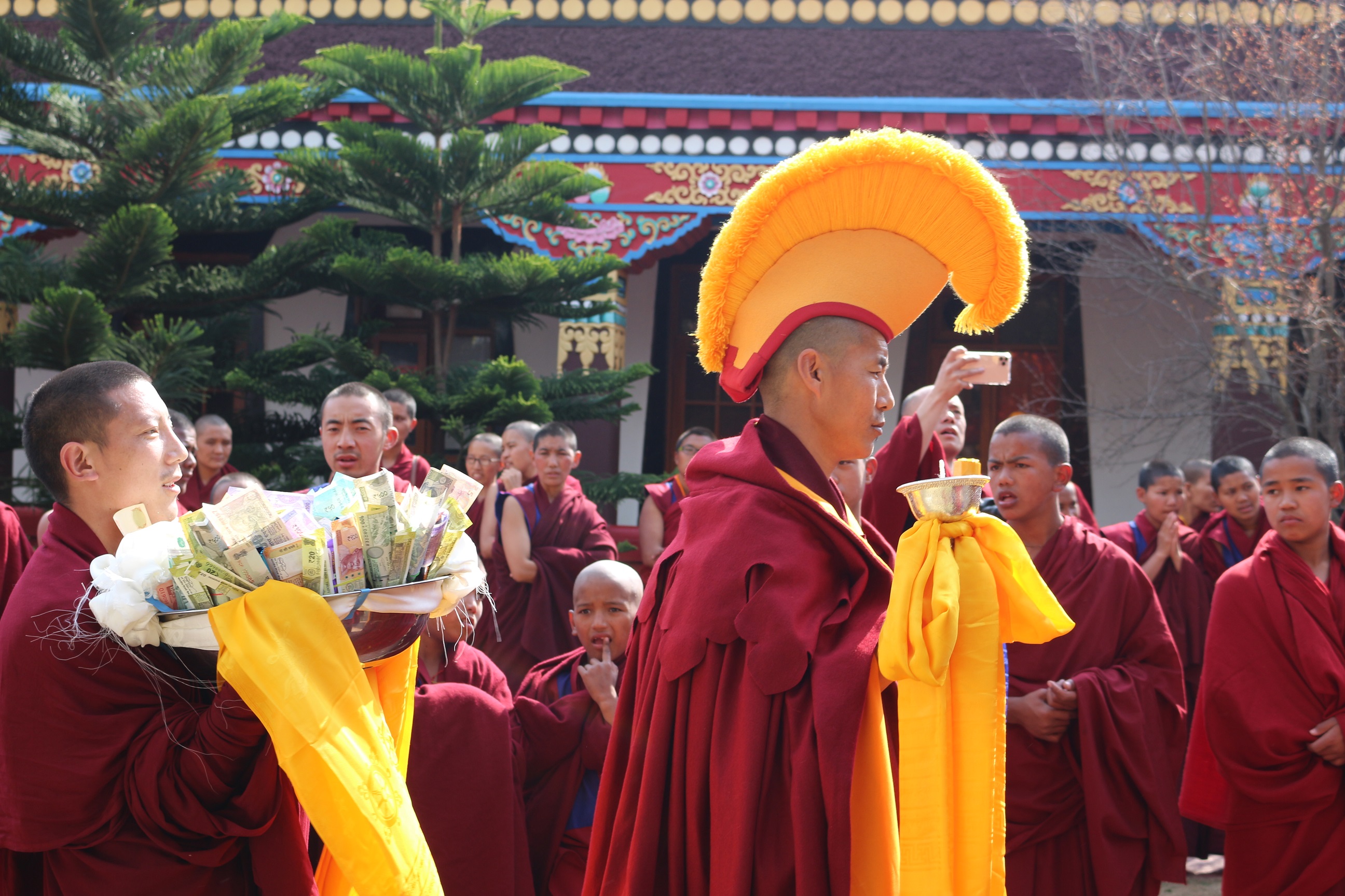 བཤད་སྒྲུབ་མཁན་སློབ་རྣམ་གཉིས་དང་དཀའ་ཆེན་དཀའ་ཆུང་བཅས་འཆམ་རའི་ཤར་ལྷོ་གཉིས་ནས་དུས་གཅིག་ཏུ་ཚོགས་ཁང་མདུན་དུ་ཕེབས་རྗེས་རིམ་ཅན་གྱིས་ཚོགས་ཁང་དུ་ཕེབས་ནས་ཁྲི་ལ་བཞུགས་གསོལ་དང་།འདུས་མང་ཡོངས་ནས་ཀུན་གསལ་བྱམས་མའི་སྔགས་བསྟོད་གྲུབ་རྗེས་འབྲས་སིལ་དང་གསོལ་ཇ་འདེགས་འབུལ་དང་སྦྲགས་གཏོང་སྒོ་ཆེན་མོའི་འགྱེད་གྲུབ་རྗེས།བཀའ་རམས་པ་རྒྱལ་རོང་ཁྲོ་སྐྱབས་མདོ་སྔགས་བླ་མེད་ཡིད་བཞིན་ནོར་བུའི་གླིང་གི་དབྲ་སྲས་དྲང་སྲོང་ཤེས་རབ་འོད་ཟེར་དང་། བཀའ་རམས་པ་ཟིང་ཆུ་སྐྱང་དགོན་ཕུན་ཚོགས་དར་རྒྱས་གླིང་གི་ཨ་ཡིག་དྲང་སྲོང་ཤེས་རབ་ཕུན་ཚོགས་དབང་རྒྱལ།