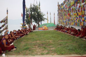 དེ་ཡང་ཞོགས་པའི་ཆུ་ཚོད་༧།༠༠ནས་བོན་སྐྱོང་ལྷ་རྒྱལ་རིར་གཡུང་དྲུང་བོན་གྱི་བཤད་སྒྲུབ་མཁན་སློབ་དབུས་དགེ་བའི་བཤེས་གཉེན་རྣམ་པ་ཁག་དང་གཡུང་དྲུང་བོན་གྱི་བཤད་སྒྲུབ་འདུས་སྡེའི་སློབ་གཉེར་ཡོངས་གདན་འཛོམས་ཀྱིས་བསང་གསོལ་ལྷ་རྒྱལ་འཐེན་ཞིང་།