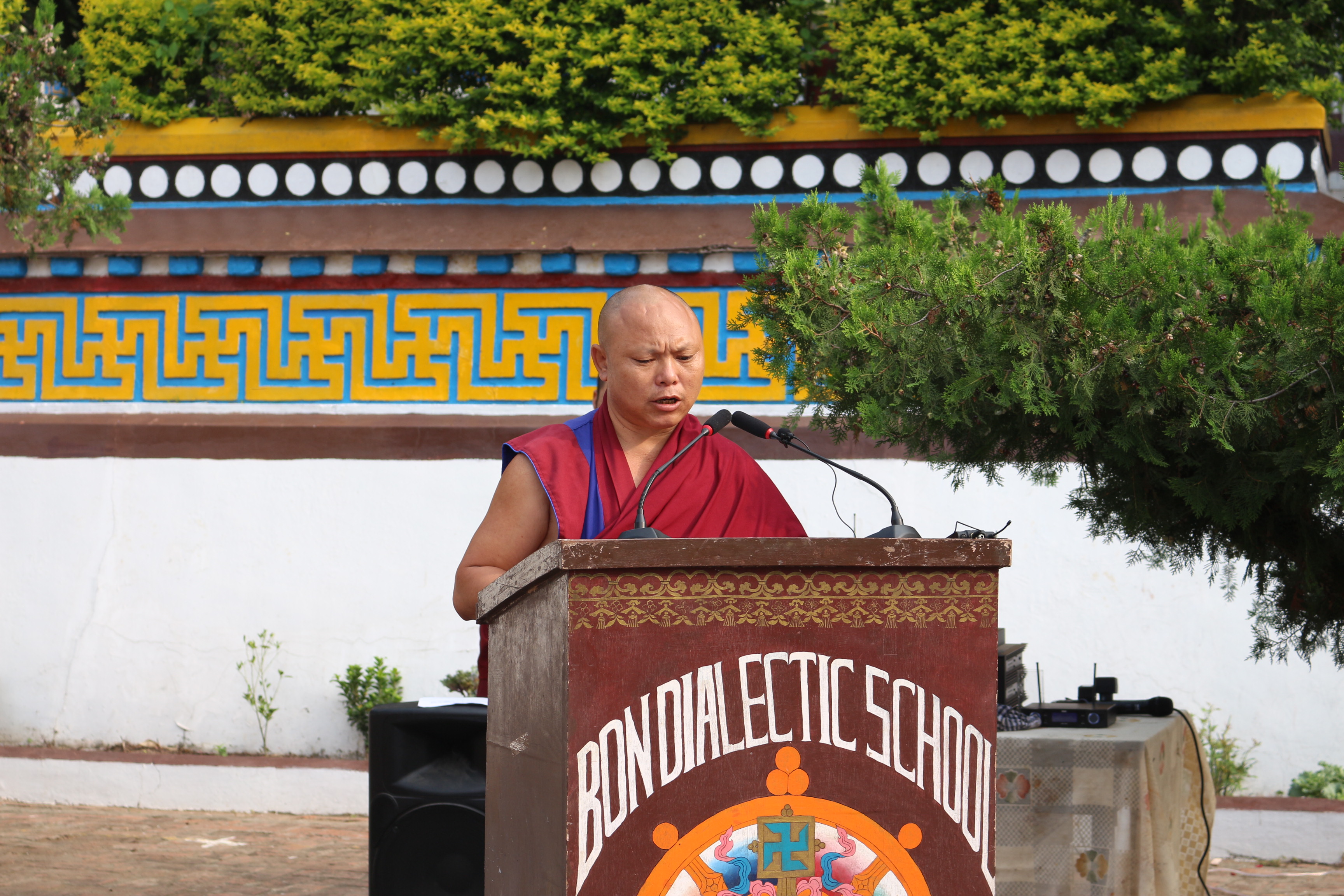 དེ་རྗེས་གཡུང་དྲུང་བོན་གྱི་བཤད་སྡེའི་མཁན་པོ་དགེ་བཤེས་ཉི་མ་དོན་འགྲུབ་མཆོག་ནས་ད་ལོ་ནད་ཡམས་རྐྱེན་པས་འཆད་ར་དང་དམ་བཅའ་ཚོགས་མ་ཐུབ་ཀྱང་། སློབ་གཉེར་བ་དག་གིས་རང་མོས་ནས་ཆུ་ཚོད་ཆུད་ཟོས་སུ་མ་བཏངས་པའི་སྒོ་ནས་འཕར་རྒྱུགས་སྔར་མ་བྱུང་བ་སྤྲད་ཐུབ་པ་བྱུང་འདི་དག་དགའ་བ་སྒོམ་དགོས་པ་ཞིག་དང་མ་འོངས་པར་ལྷག་ཏུ་ཤུགས་སྣོན་བྱེད་དགོས་སྐོར་ནས་བཀའ་སློབ་བསྩལ་ཡོད་པ་རེད།