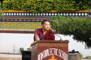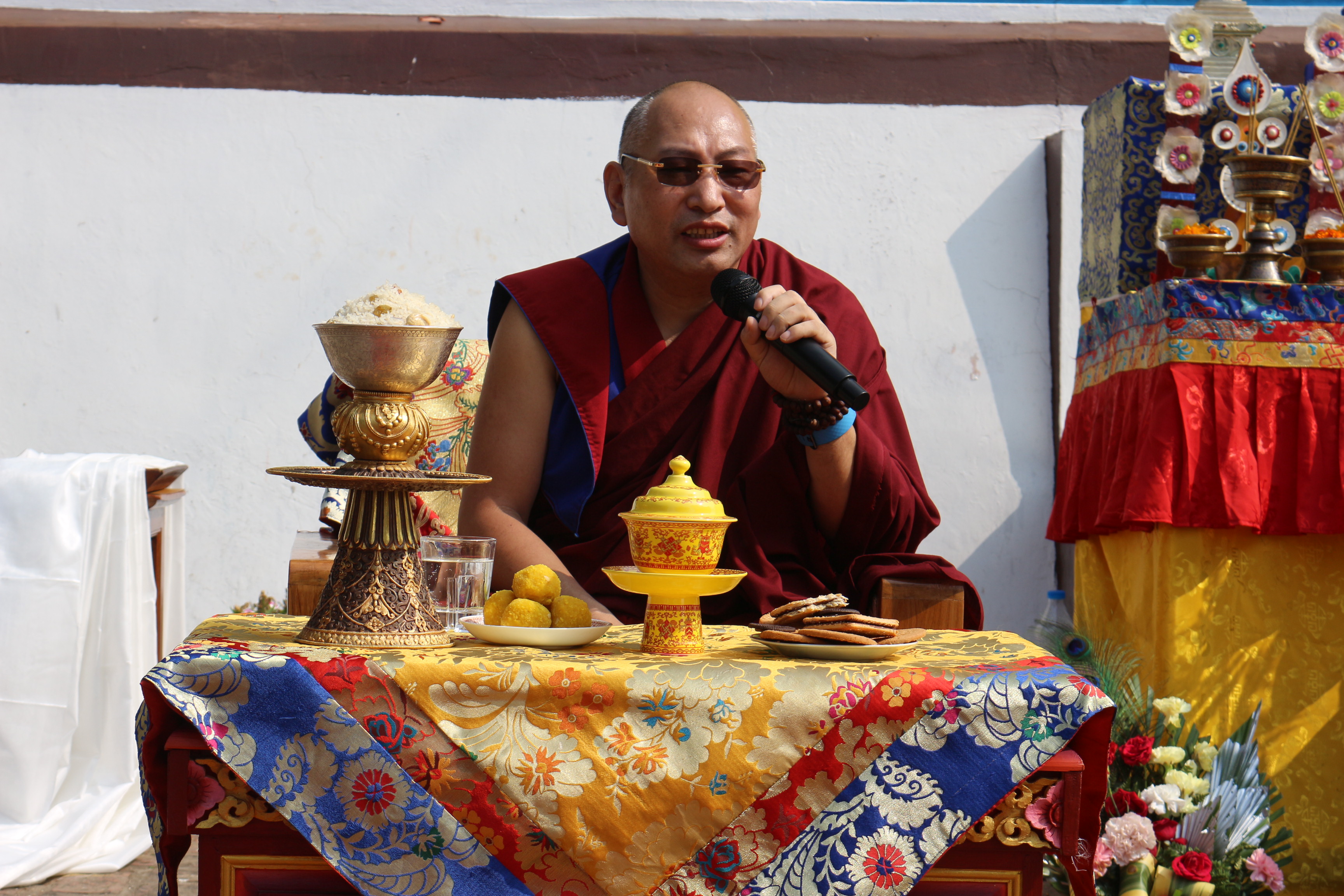 མཇུག་མཐར་ཞྭ་དཀར་བསྟན་པའི་མངའ་བདག་སྨན་རིའི་མཁན་ཆེན་༣༤པ་ལུང་རྟོགས་ཟླ་བ་དར་རྒྱས་རིན་པོ་ཆེ་མཆོག་ནས་སྐྱབས་རྗེ་གོང་མ་རྣམས་ནས་གོམ་གང་སྤོས་ཀྱང་གཞན་ས་ཡིན་པའི་རྒྱུས་མེད་ཀྱི་ཡུལ་འདི་ནས། བཤད་སྒྲུབ་ཟུང་གི་བསྟན་པའི་གནས་མལ་ཁྱད་པར་ཅན་འདི་ལྟ་བུ་ཞིག་བཞེངས་བསྐྲུན་ཐུབ་པ་དེ་རིང་གི་དུས་ཆེན་འདིར་དྲན་གསོ་བྱེད་དགོས་པ་གལ་ཆེན་ཡིན་སྐོར་སོགས་ཀྱི་བཀའ་སློབ་བསྩལ་རྗེས། སྐབས་༤༢པའི་བཤད་སྡེའི་ཚོགས་གཙོ་མཆོག་ནས་བཀའ་དྲིན་ལེགས་གསོལ་གྱི་གསུང་བཤད་གནངས་ནས་མཛད་སྒོ་ཡོངས་སུ་མཇུག་གྲུབ་ཡོད་པ་བཅས་ཀྱི་གནས་བསྡུས་སུ།
