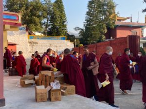 གྲྭ་བཙུན་དང་སློབ་ཕྲུག་དག་གིས་ཀྱང་སྒྲིག་རང་ཁུར་གྱིས་གླིང་འདི་དང་ལྷ་སྡེ་མི་མང་ཀུན་བདེ་འཇགས་ངང་དུ་གནས་ཡོད་པ་དང་། ད་དུང་ཡང་མི་མཐུད་དུ་སྒྲིག་གཞི་རྒྱུན་མཐུད་བྱེད་འཆར་ཡོད་པས། ༧སྐྱབས་རྗེ་སྨན་རིའི་དཔོན་སློབ་རིན་པོ་ཆེས་ཐུགས་བསམ་ཆེར་བཞེས་ཀྱིས་ཨ་རིར་རྟེན་གཞི་བྱས་པའི་ཁོང་གི་བོན་ཚོགས་ཁྱུང་རྫོང་འོད་གསལ་གླིང་གིས་ཕྱི་ཟླ་༡༠།ཚེས༢༠ཉིན་འདུས་མང་ཡོངས་ལ་གྲོ་ཕྱེ་དང་།
