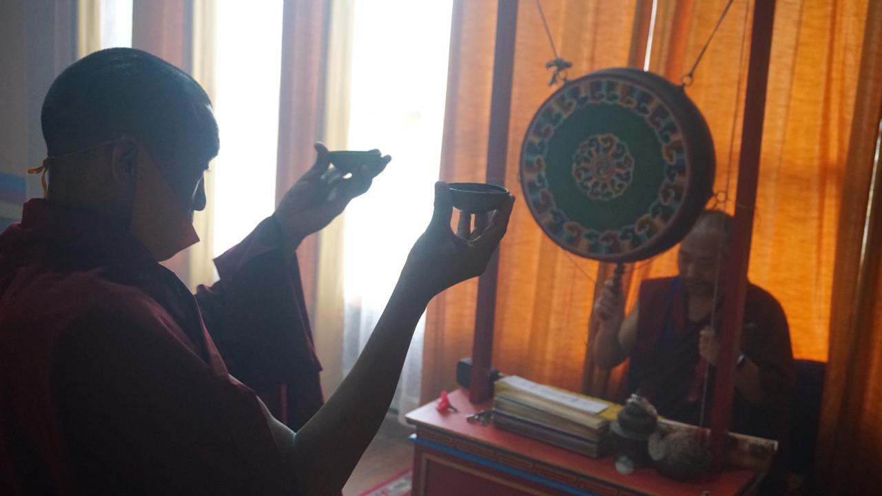 དེ་ཡང་སྤྱི་ཟླ་༡༢པའི་ཚེས་༡༦ནས་༢༠༢༡ལོའི་སྤྱི་ཟླ་༢ཚེས་༣བར་ཉིན་ཞེ་དགུའི་རིང་མུན་མཚམས་བཅད་རྒྱར་བཞུགས་ནས་ཁ་སང་སྟེ་ཕྱི་ལོ་༢༠༢༡ལོའི་ཟླ་༢ཚེས་༣ཉིན་གྱི་ཕྱི་དྲོའི་ཆར་སྐྱབས་རྗེ་སྨན་རིའི་དཔོན་སློབ་རིན་པོ་ཆེ་དབུས་སྨན་རིའི་གཡུང་དྲུང་བོན་གྱི་བཤད་སྒྲུབ་མཁན་སློབ་རྣམ་གཉིས་བཅས་གྲྭ་ཚང་གི་ལས་སྣེ་དག་གི་བཀྲ་ཤིས་རྟེན་འབྲེལ་གྱི་སྨོན་བརྗོད་དང་སྦྲགས་གནམ་ནས་གཡུ་འབྲུག་གྲགས་ཤིང་ས་ལ་བཀྲ་ཤིས་ཀྱི་སྦྲང་ཆར་སིམ་སིམ་བབས་པའི་རྟེན་འབྲེལ་དང་བསྡོངས་སྐུ་མཚམས་བདེ་ལེགས་ངང་གྲོལ་ཡོད་པའི་གནས་བསྡུས་སུ།
