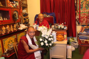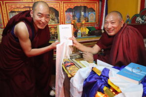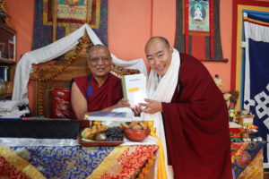 ཕྱི་ལོ་༢༠༠༡ལོའི་ལོ་མཇུག་ཏུ་རྒྱ་གར་དུ་འབྱོར་ཏེ་གདན་ས་ཆེན་པོའི་ལུགས་སྲོལ་ལྟར་༧སྐྱབས་རྗེ་སྨན་རིའི་མཁན་སློབ་རྣམ་གཉིས་ཀྱི་མདུན་ནས་སྔ་རྗེས་སུ་རབ་བྱུང་དང་དྲང་སྲོང་གི་བསླབ་ཁྲིམས་ཞུས། གདན་ས་སྨན་རིའི་བཤད་སྒྲུབ་འདུས་སྡེའི་སྒྲིག་ཁོངས་སུ་ཞུགས་ཤིང་མི་ལོ་བཅོ་ལྔའི་རིང་དུ་མདོ་སྔགས་སེམས་གསུམ་གཙོས་ཐུན་མོང་རིག་གནས་དང་ཐུན་མོང་མ་ཡིན་པའི་རིག་གནས་ལ་སྦྱང་བ་ལྷོད་མེད་བྱས་ཏེ། མཐར་ཕྱི་ལོ་༢༠༡༦ལོར་བཤེས་གཉེན་གྱི་མཚན་རྟགས་ཐོབ། སྔ་རྗེས་སུ་གཞུང་འབྲེལ་དང་གཞུང་འབྲེལ་མ་ཡིན་པའི་བགློ་གླེང་ཁག་མང་པོར་མཉམ་ཞུགས་བྱས་པར་མ་ཟད་བརྗོད་གཞི་ངེས་ཅན་རེའི་ཐོག་བགློ་གླེང་མང་ཙམ་བྱས། ཕྱི་ལོ་༢༠༡༩ལོར་རྒྱལ་སྤྱིའི་བོད་རིག་པའི་ཞིབ་འཇུག་ཚོགས་ཆེན་ཐེངས་བཅོ་ལྔ་པ་Franceཧྥུ་རན་སེ་རུ་འཚོགས་སྐབས་མཉམ་ཞུགས་བྱས། ད་ལྟ་སྨན་རིའི་བཤད་སྒྲུབ་འདུས་སྡེའི་གཞུང་ཁྲིད་དགེ་རྒན་གྱི་འགན་ཁུར་ཞུ་མུས། །