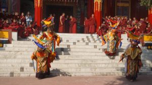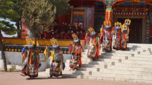 རྩ་རྒྱུད་གསང་བ་བསེན་ཐུབ་ལས། རང་བཞིན་ཆ་ལུགས་ལྔ་རུ་བཞུགས་ནས་ནི། ཕྱག་རྒྱ་སྐུ་རྣམས་ཡེ་ཤེས་ལྷ་རུ་སྒོམ། བདག་ཉིད་ཡི་དམ་ལྷ་ཡི་ང་རྒྱལ་ལས། ཕུང་པོ་རྩ་དང་ཡན་ལག་བཅའ་བ་རྣམས། སྒྱུ་འཕྲུལ་བྱེ་བ་ས་ཡ་ལུས་ལ་བཀོད། རྟགས་གསུམ་ཚང་ནས་དམིགས་པ་དབྱིངས་སུ་བསྟིམ། སེམས་བསྐྱེད་ཡིད་བཟུང་ལྷ་ཡི་ཏིང་འཛིན་ནི། ཆས་བཞག་རྟེན་གནས་ལྷའི་གཞི་མ་སྟེ། གནས་པ་མཚོན་ཕྱིར་དམིགས་པའི་ཕོ་བྲང་བཀོད། ཡིག་འབྲུ་བསྐྱེད་པ་ལྷའི་ས་བོན་ཏེ། ཡིག་འབྲུ་བརྒྱ་རྩ་སྐར་ཆེན་བཞིན་དུ་བཀྲམས། ཏིང་འཛིན་རྣམས་ནི་ལྷ་ཡི་ཞགས་པ་སྟེ། དམིགས་པ་མི་གཏོང་སོ་སོའི་གནས་སུ་བཟུང༌། སྙིང་པོ་རྣམས་ནི་ལྷ་ཡི་ཕེའུ་སྟེ། དབྱིངས་ནས་འགུགས་ཤིང་མཁའ་ལ་གསལ་ཀྱང་བཏབ། ཅེས་གསུངས་པ་ལྟར་རོ། ཡང་འགའ་ཞིག་ནས། གཞུང་བཤད་དང་མཐུན་པར་གར་ནི་ལག་པས་བསྒྱུར་བ་དང༌། བྲོ་ནི་རྐང་པས་བརྡུང་བ། ཞེས་ཀྱང་གསུངས། འཆམ་ཞེས་པ་ཡང༌། བོད་རྒྱ་ཚིག་མཛོད་ལས། དཔེར་ན་ཁ་འཆམ་པ་དང༌། གྲོས་འཆམ་པ་སྟེ། ཁ་མཐུན་པའམ་མཚུངས་པར་བསྒྱུར་བ་ལ་གོ་བས། ཞབས་ཕྱག་གི་སྟབས་རྣམས་མཚུངས་པར་བསྒྱུར་བ་ལ་འཆམ་ཞེས་གསུངས་པ་ཡང་ཕྱི་ལྟར་དེ་ ལྟར་ཡིན་དུ་ཆོག་ཀྱང༌། ནང་ལྟར་ན་བསྐྱེད་རྫོགས་ཟུང་འཇུག་དང་ཡ་མ་བྲལ་བར་ཞབས་ཕྱག་གི་སྟངས་སྟབས་མཚུངས་ པར་བསྒྱུར་བ་ལ་གོ་དགོས་སམ་སྙམ་མོ། དགོན་སྡེ་སོ་སོར་འཆམ་སྣ་མི་འདྲ་བ་དང་འཆམ་གྱི་སྲོལ་འབྱེད་མི་འདྲ་བས་གསར་ གཏོད་ལས་གྲུབ་པའི་འཆམ་སྲོལ་མི་འདྲ་བ་བརྗོད་ཀྱི་མི་ལང་བ་ཞིག་ཡོད་མོད་ཀྱང༌། བོན་གྱི་གདན་ས་ཆེན་པོ་དཔལ་གཤེན་བསྟན་སྨན་རིའི་གླིང་འདིར། འཆམ་ཆེན་གྱི་གཙོ་བོ། ཡེ་ཤེས་ཀྱི་དབལ་མོ་དང༌། དུས་དྲུག་སྤྲུལ་པའི་དབལ་མོ་དྲུག གསས་མཁར་མ་རྒྱུད་ཀྱི་གར་འཆམ། དབལ་ཕུར་ནག་པོའི་བསྒྲལ་བསྟབ། གཤེན་རབ་དགུ་འཆམ། གཟེ་གྱད་སྤར་མའི་གར་འཆམ་བཅས་འཆམ་སྲོལ་ཡོད་པའོ།
