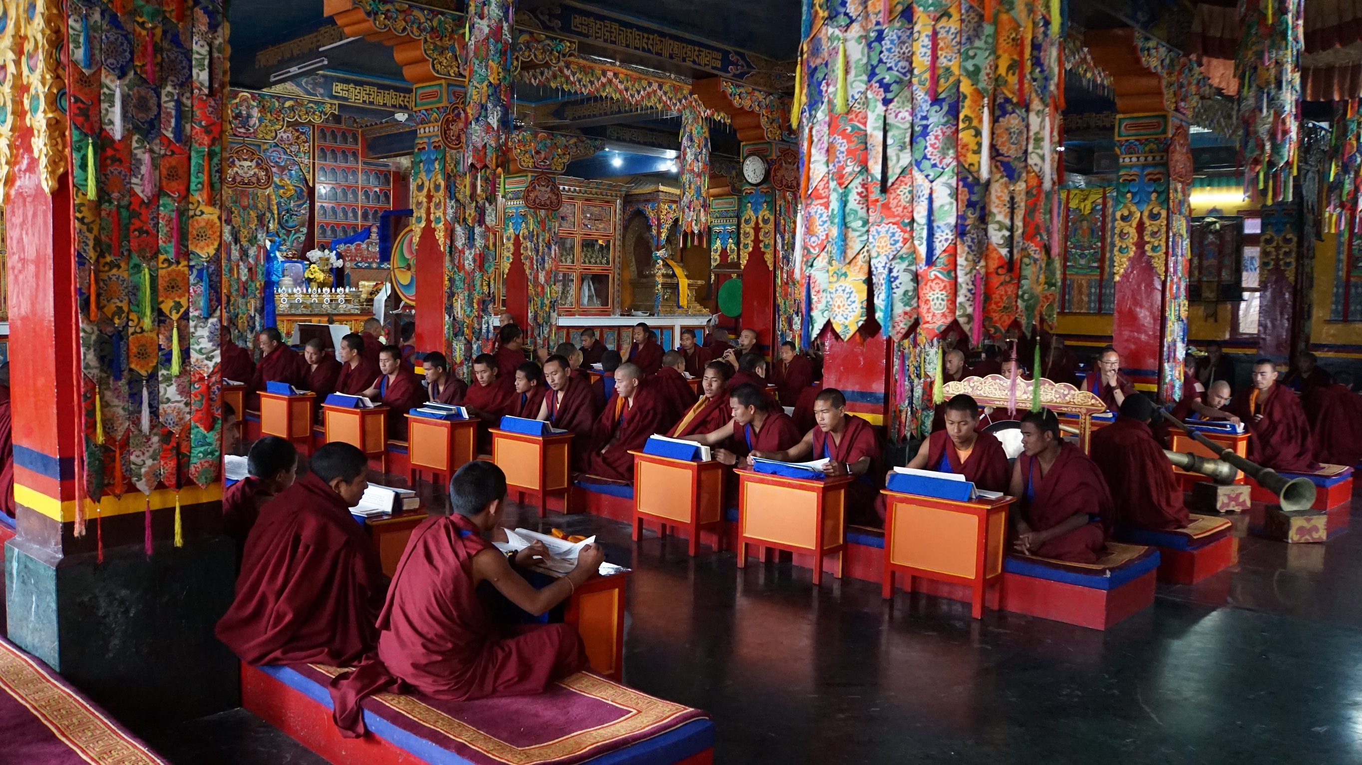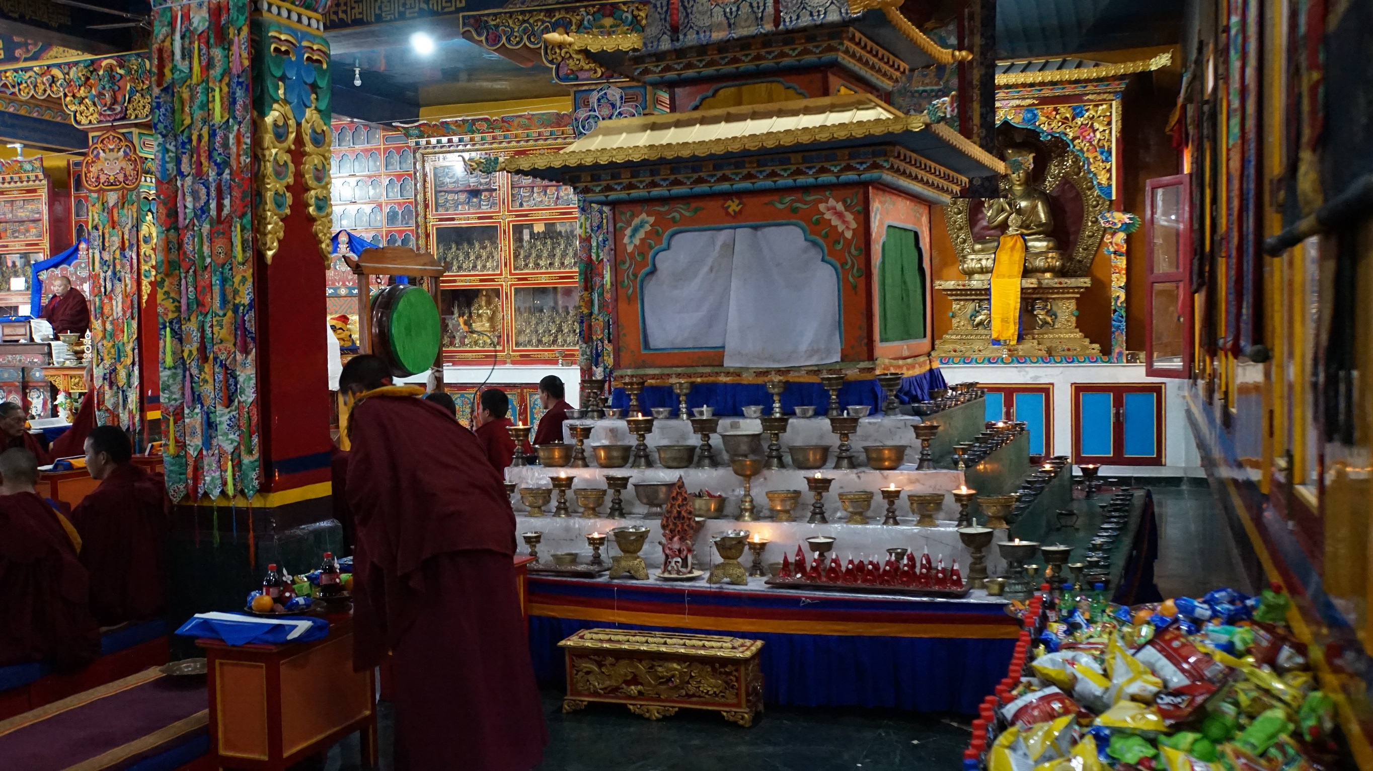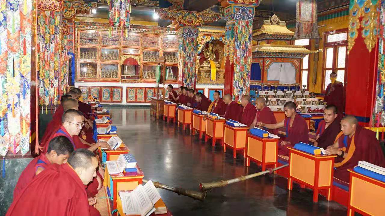 བོད་ཚེས་ཉེར་དགུའི་དགོང་མོར་མཚན་ཕུད་ཀྱི་སྒྲུབ་པ་བཅས་ཉིན་མཚན་བརྒྱད་ཀྱི་རིང་རིག་པའི་ལྷ་མཆོག་ཤེས་རབ་སྨྲ་བའི་སེང་གེའི་དཀྱིལ་འཁོར་ཞལ་ཕྱེས་ནས་ཤེས་རབ་སྨྲ་བའི་སེང་གེའི་སྐུ་གསུང་ཐུགས་ཡོན་ཏན་འཕྲིན་ལས་ལྔའི་བསྙེན་འཛབ་གྲངས་ཚང་བསགས་མཛད་རྗེས། བོད་ཚེས་༣༠ཉིན་གྱི་ཞོགས་པ་ནས་༧རྒྱལ་བ་མཉམ་མེད་ཆེན་པོའི་བླ་སྒྲུབ་དང་ཤེས་རབ་སྨྲ་བའི་སེང་གེའི་སྒྲུབ་གཞུང་སོགས་སྦྲགས་ཏེ་གཏང་རག་གི་ཚོགས་འཁོར་རྒྱས་འབུལ་བྱས་ཡོད་པ་རེད།