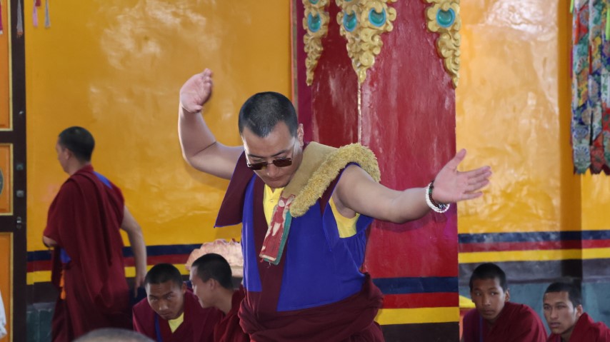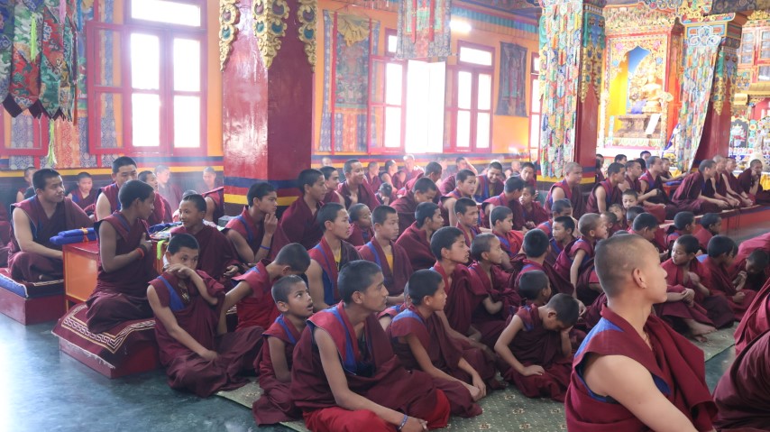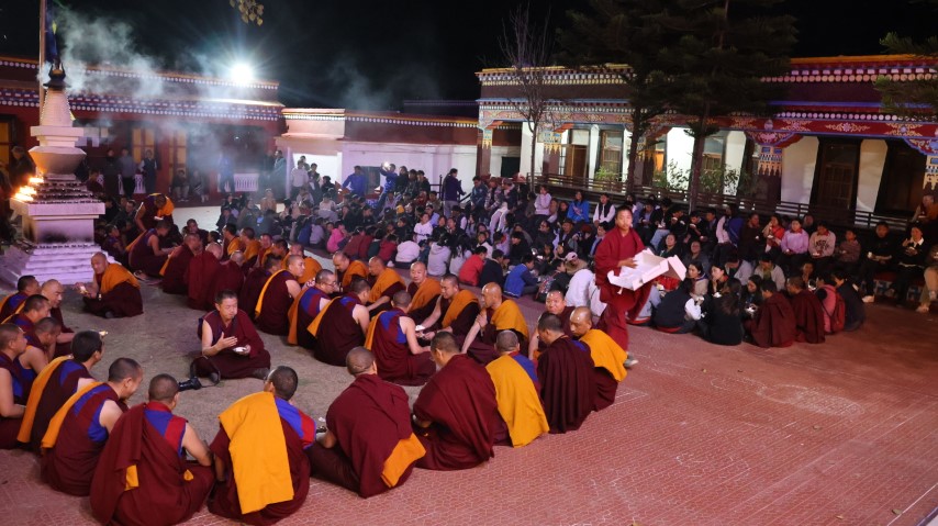 དགོང་མོ་འདུལ་ཁང་ཡང་སྟེང་ནས་གཟིམས་བརྡ་བཏང་གྲུབ་པ་དང་། འདུལ་ཁང་ཆེན་མོའི་མདུན་ཐང་དུ་སེར་སྐྱ་མི་མང་ཡོངས་ནས་ངན་སོང་དོང་སྤྲུག་གི་སྙིང་པོ་དབྱངས་སུ་གྱེར་བཞིན་མར་མེའི་གླིང་སྐོར་བྱས། རྒྱལ་བ་སྨན་རིའི་མཁན་སློབ་རྣམ་གཉིས་ནས་སྤྲི་གོར་བཏུབ་གནང་ཡོད་པ་དང་། སེར་སྐྱ་མི་མང་ཡོངས་ལ་གསོལ་ཇ་དང་ཁ་ཟས་འདེགས་འབུལ་ཞུས་གནང་ནས་མཇུག་གྲུབ་ཡོད་པ་བཅས་ཀྱི་གནས་བསྡུས་སུ།
