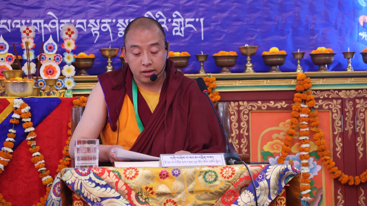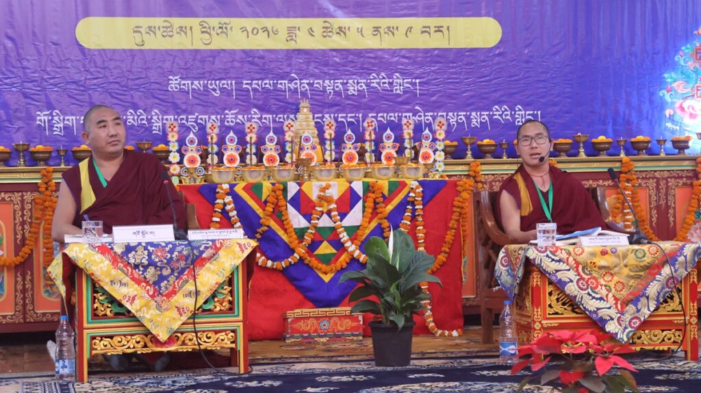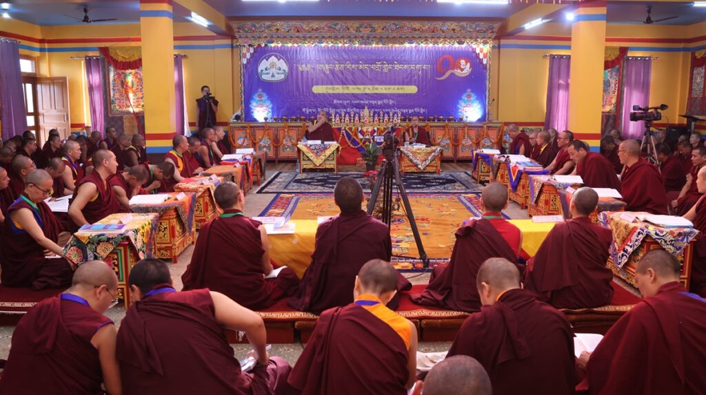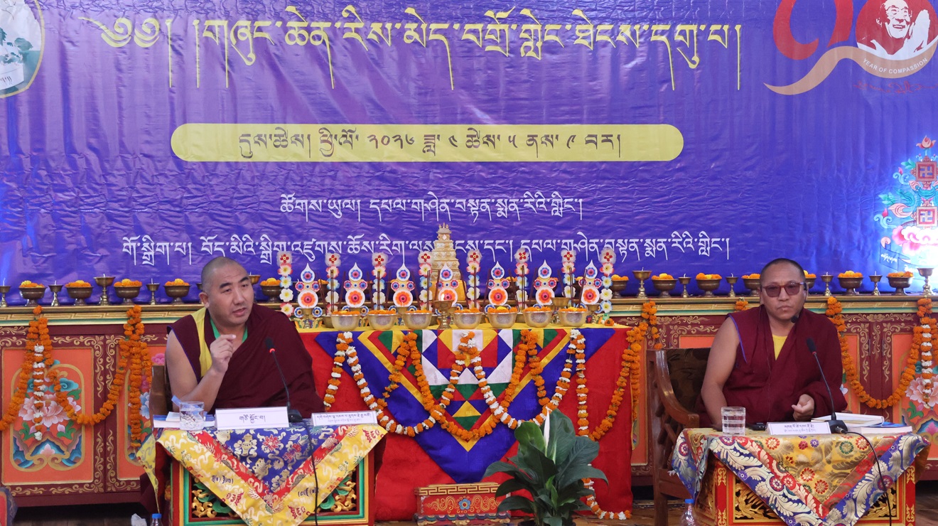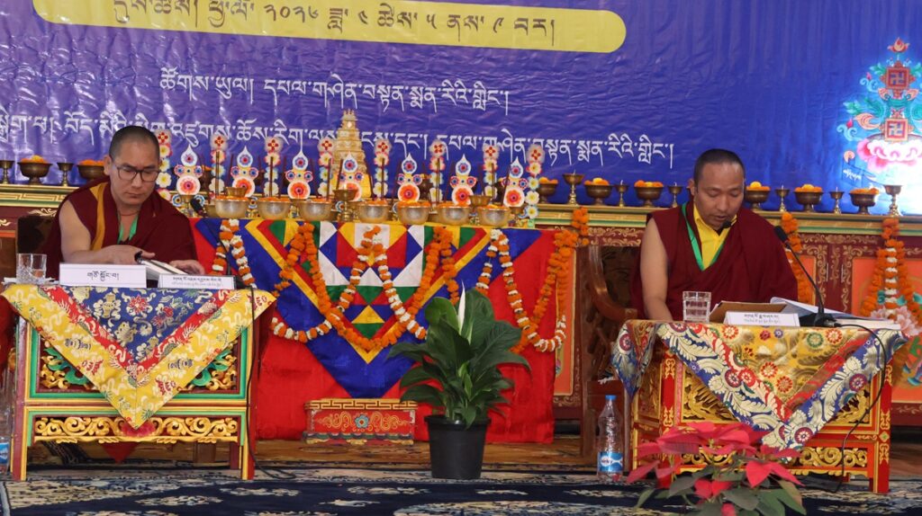 དུས་ཚོད་ ༡༡་༡༥ ནས་ཚོགས་ཐུན་བརྒྱད་པ། རྫོང་སར་བཤད་གྲྭ་ཆོས་ཀྱི་བློ་གྲོས་ཀྱི་མཁན་པོ་ཚེ་དབང་རྡོ་རྗེ་མཆོག་གི་གཙོ་སྐྱོང་འོག ཇོ་ནང་མ་དགོན་རྟག་བརྟན་ཕུན་ཚོགས་ཆོས་འཁོར་གླིང་གི་དགེ་བཤེས་པ་སངས་འཕྲིན་ལས་མཆོག་གིས་“ཕར་ཕྱིན་མདོ་ལུགས་མ་ལས་བཏུས་པའི་ངེས་འབྱེད་ཡན་ལག་གི་སྐོར་བློ་གསར་འཐད་ལྡན་”ཞེས་པའི་དཔྱད་རྩོམ་ཐོག་ནས་ཤེས་རབ་ཀྱི་ཕ་རོལ་ཏུ་ཕྱིན་པའི་ནང་ཚན་གྱི་སྒྲུབ་པའི་སྦྱོར་བ་ངེས་འབྱེད་ཡན་ལག་བཤད་པ་ལ་རྩ་བར་ངེས་འབྱེད་ཡན་ལག་རྣམ་བཞི་དང༌། །ཞེས་གསུངས་པའི་དགོས་དོན་དང་འབྲེལ་སྤྱི་དོན་དང་ཡན་ལག་གི་དོན་གཉིས་ཀྱི་སྒོ་ནས་གསུང་བཤད་དང་དེའི་ཐོག་བགྲོ་གླེང་གནང་གྲུབ་མཚམས་ཉིན་གུང་གསོལ་ཚིགས་བར་གསེང་གནང་ཞིང་།