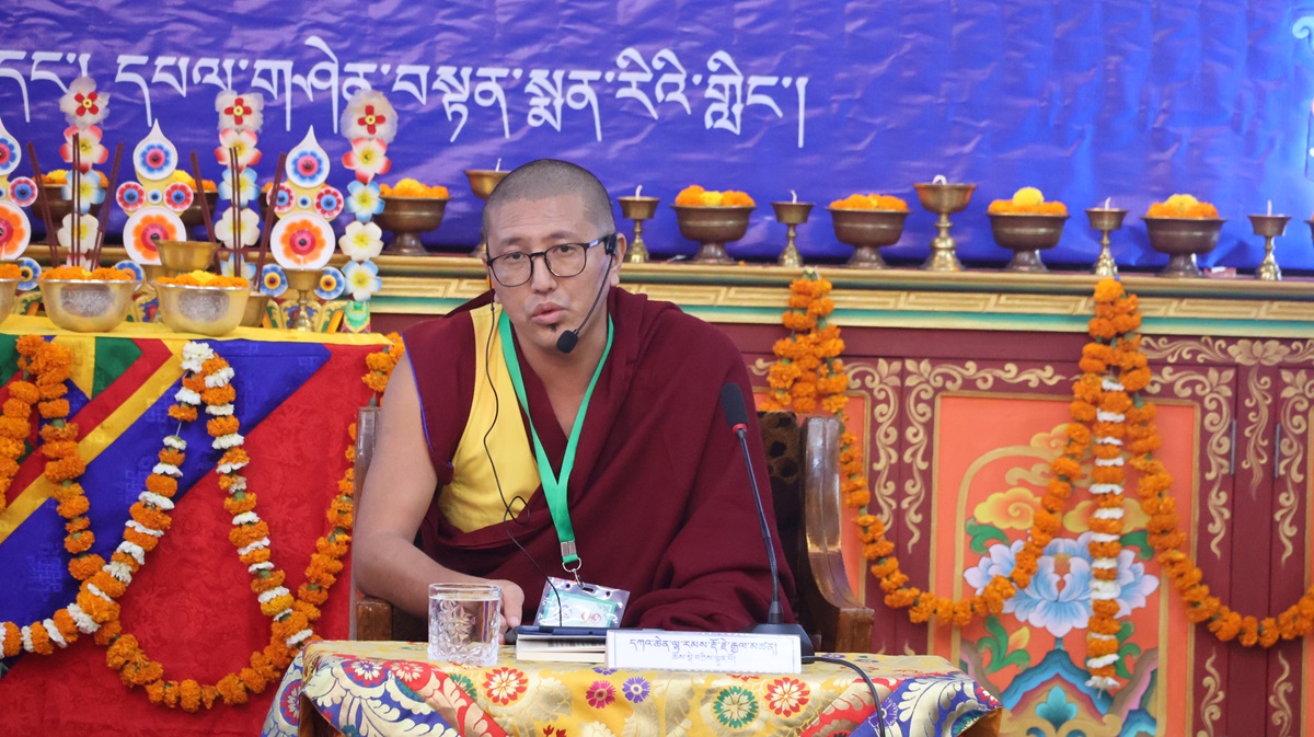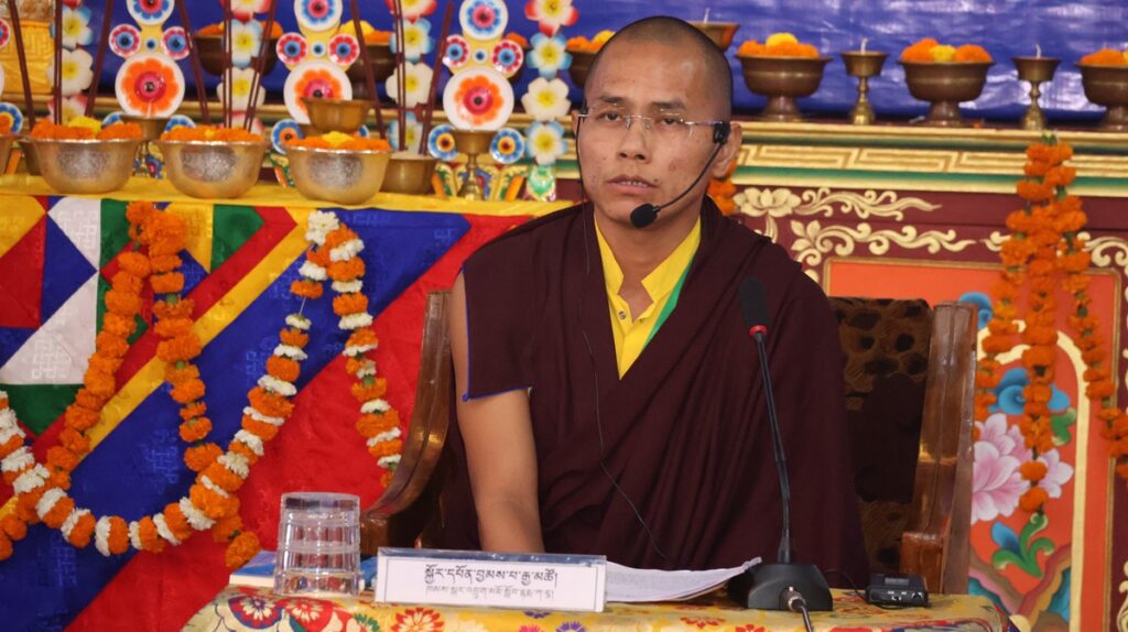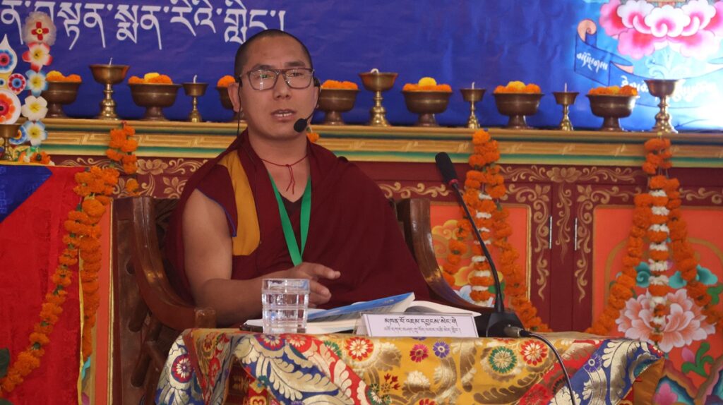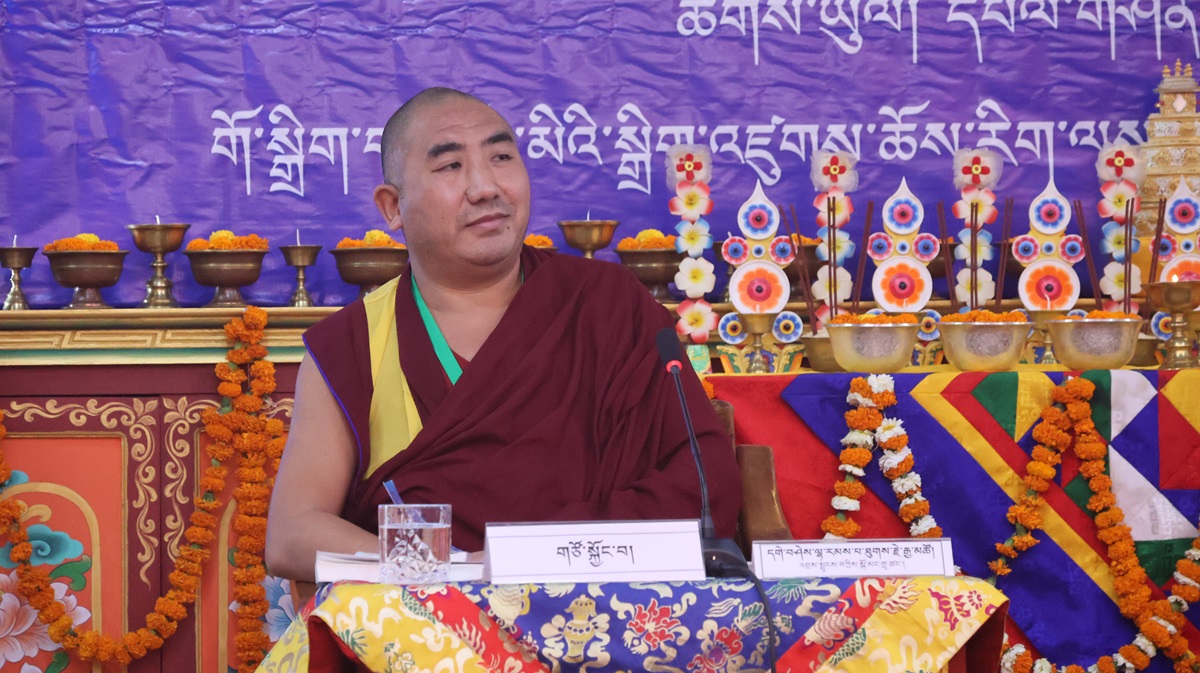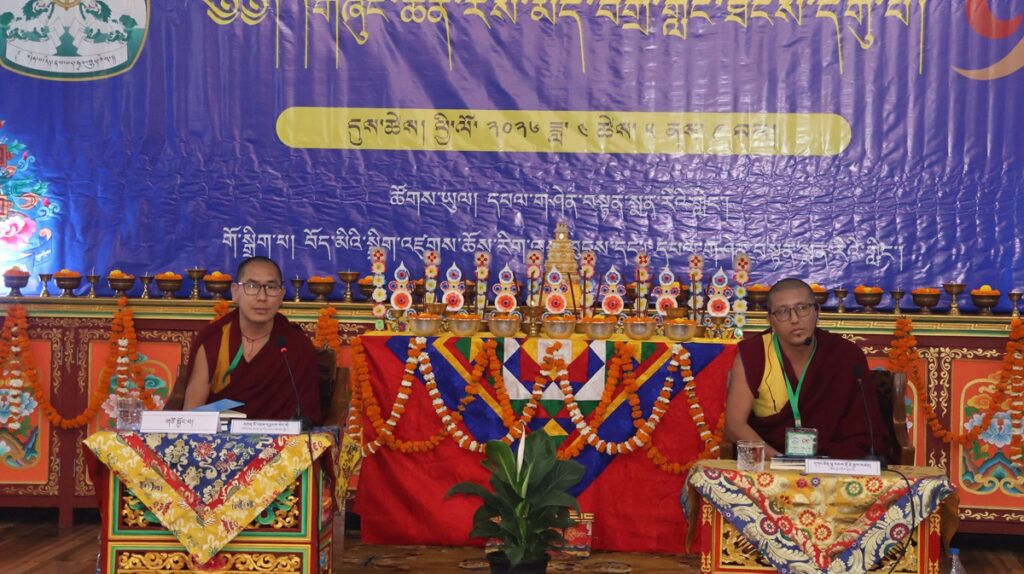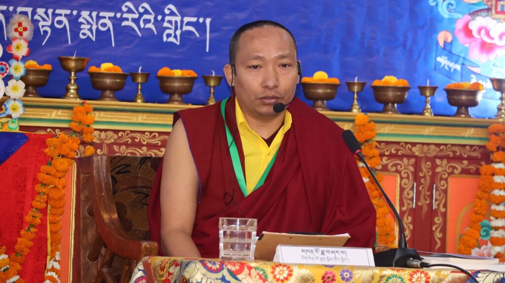 དུས་ཚོད་ ༡༡་༡༥ ནས་ཚོགས་ཐུན་བརྒྱད་པ། རྫོང་སར་བཤད་གྲྭ་ཆོས་ཀྱི་བློ་གྲོས་ཀྱི་མཁན་པོ་ཚེ་དབང་རྡོ་རྗེ་མཆོག་གི་གཙོ་སྐྱོང་འོག ཇོ་ནང་མ་དགོན་རྟག་བརྟན་ཕུན་ཚོགས་ཆོས་འཁོར་གླིང་གི་དགེ་བཤེས་པ་སངས་འཕྲིན་ལས་མཆོག་གིས་“ཕར་ཕྱིན་མདོ་ལུགས་མ་ལས་བཏུས་པའི་ངེས་འབྱེད་ཡན་ལག་གི་སྐོར་བློ་གསར་འཐད་ལྡན་”ཞེས་པའི་དཔྱད་རྩོམ་ཐོག་ནས་ཤེས་རབ་ཀྱི་ཕ་རོལ་ཏུ་ཕྱིན་པའི་ནང་ཚན་གྱི་སྒྲུབ་པའི་སྦྱོར་བ་ངེས་འབྱེད་ཡན་ལག་བཤད་པ་ལ་རྩ་བར་ངེས་འབྱེད་ཡན་ལག་རྣམ་བཞི་དང༌། །ཞེས་གསུངས་པའི་དགོས་དོན་དང་འབྲེལ་སྤྱི་དོན་དང་ཡན་ལག་གི་དོན་གཉིས་ཀྱི་སྒོ་ནས་གསུང་བཤད་དང་དེའི་ཐོག་བགྲོ་གླེང་གནང་གྲུབ་མཚམས་ཉིན་གུང་གསོལ་ཚིགས་བར་གསེང་གནང་ཞིང་།
