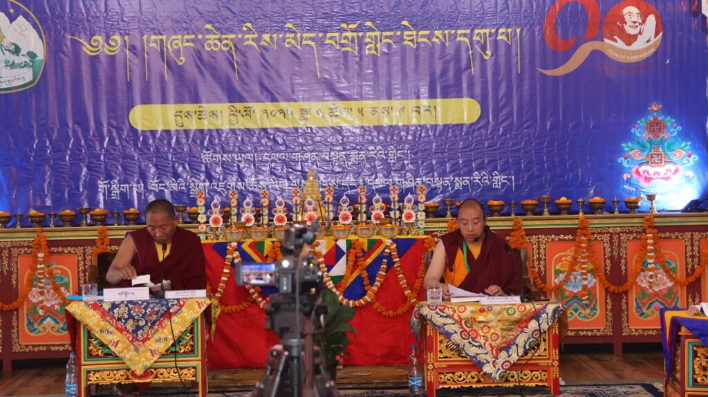 དེ་རྗེས་ཚོགས་ཐུན་བཅུ་པ། འབྲས་སྤུངས་བཀྲིས་སྒོ་མང་གྲྭ་ཚང་གི་དགེ་བཤེས་ལྷ་རམས་པ་ཐུགས་རྗེ་རྒྱ་མཚོ་མཆོག་གི་གཙོ་སྐྱོང་འོག འབོ་དཀར་བཤད་གྲྭ་འོད་འབར་འཆི་མེད་གླིང་གི་མཁན་པོ་འཇམ་དབྱངས་སེང་གེ་མཆོག་གིས་དཔྱད་རྩོམ་དང་འབྲེལ་མཐོང་ལམ་རྒྱུད་ལ་སྐྱེ་ཚུལ་བཤད་པ་དང་། འགོག་ལམ་གཉིས་ཀ་ཆོས་ཉིད་ཡིན་མིན་རྣམ་པར་བཀྲོལ་བ། ཟག་བཅས་སྒོམ་ལམ་དང་ཟག་མེད་སྒོམ་ལམ་གྱི་ཁྱད་པར་འབྱེད་པ་བཅས་གྱི་སྒོ་ནས་གསུང་བཤད་དང་དེའི་ཐོག་བགྲོ་གླེང་གནང་ཞིང་དུས་ཚོད་ ༥་༡༥ ནས་ཉིན་གཉིས་པའི་བགྲོ་གླེང་གི་གཏམ་བཤད་ལས་རིམ་གྲུབ་ཡོད་པ་དང་། དེ་རྗེས་དུས་ཚོད་ ༧ པ་ནས་མཉམ་ཞུགས་པ་ནང་ཁུལ་གྲོས་བསྡུར་གནང་སྟེ་རིས་མེད་བགྲོ་གླེང་ཐེངས་དགུ་པའི་ཉིན་གཉིས་པའི་མཛད་རིམ་ཡོངས་གྲུབ་ཡོད་པ་བཅས་ཀྱི་གནས་ཚུལ་དུ་གཡུང་དྲུང་བོན་གྱི་དྲྭ་ཚིགས་ཁང་ནས།