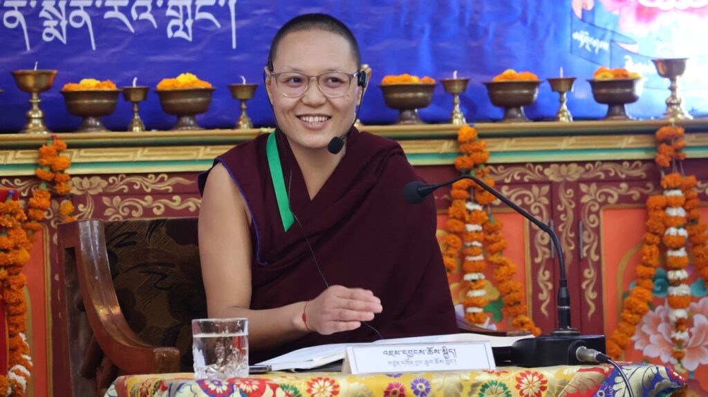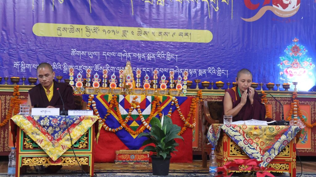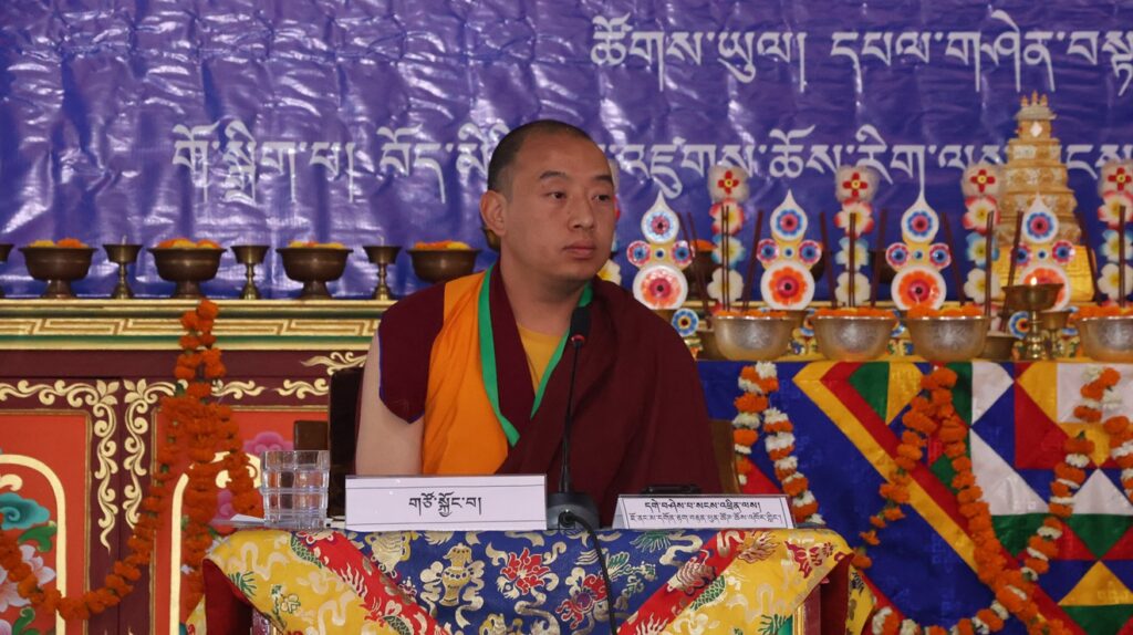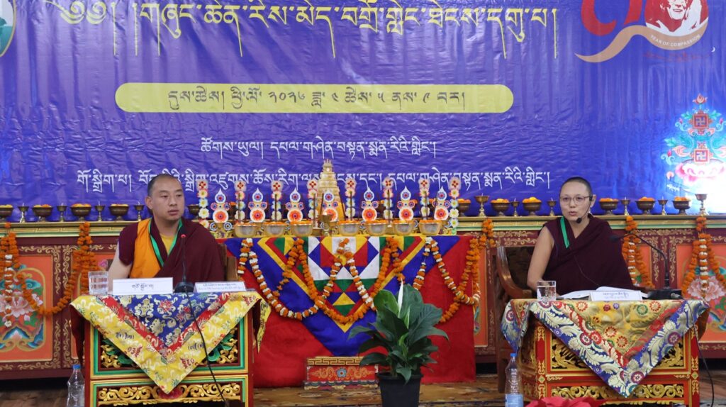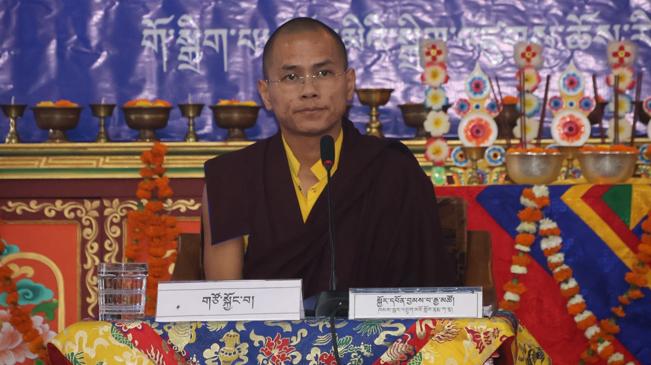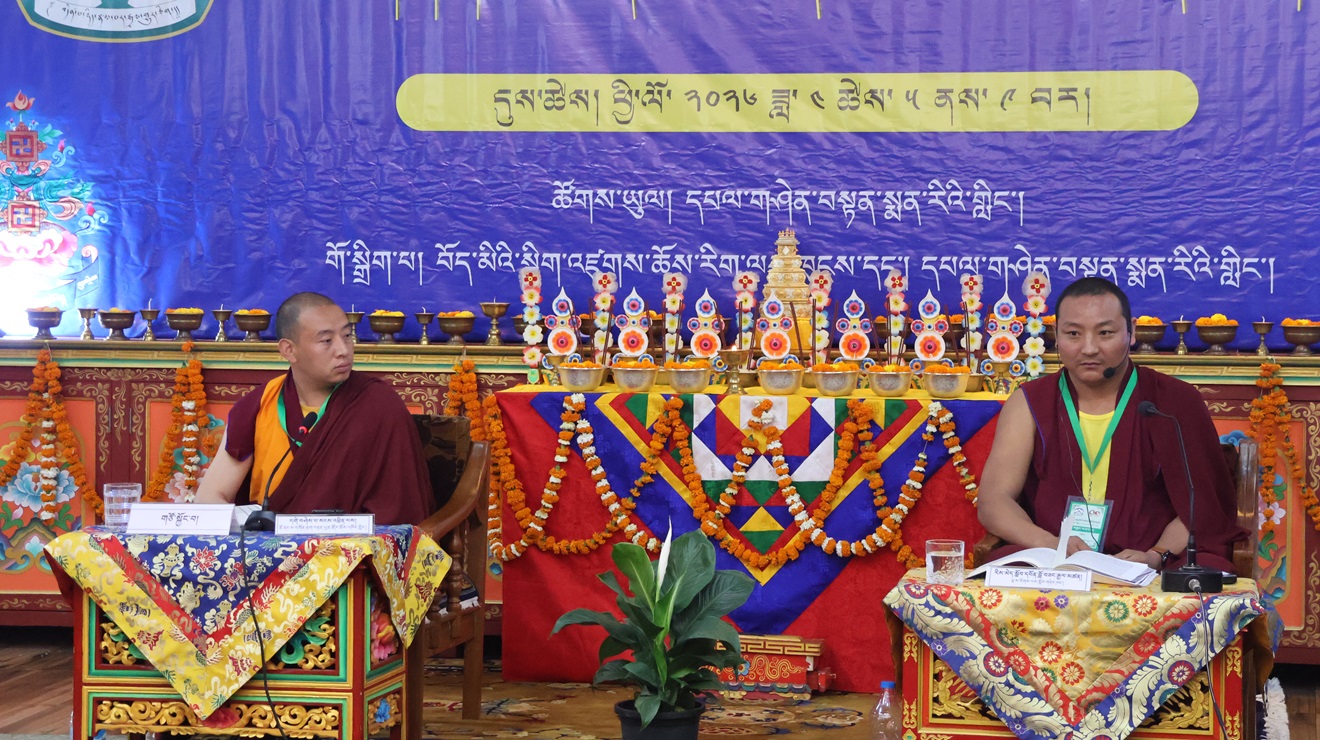 དུས་ཚོད་ ༡༡་༡༥ ནས་ ཚོགས་ཐུན་བཅུ་བཞི་པ། ཇོ་ནང་མ་དགོན་རྟག་བརྟན་ཕུན་ཚོགས་ཆོས་འཁོར་གླིང་གི་དགེ་བཤེས་པ་སངས་འཕྲིན་ལས་མཆོག་གི་གཙོ་སྐྱོང་འོག བཙུན་དགོན་བྱང་ཆུབ་ཆོས་གླིང་གི་འཇམ་དབྱངས་ཆོས་སྐྱིད་མཆོག་གིས་དཔྱད་རྩོམ་“མཚན་མཚོན་སྐོར་ཅུང་ཟད་བཤད་པ་”ཞེས་པའི་ཐོག་གསུང་བཤད་དང་དེའི་ཐོག་བགྲོ་གླེང་གནང་གྲུབ་མཚམས་ཉིན་གུང་གསོལ་ཚིགས་བར་གསེང་གནང་།