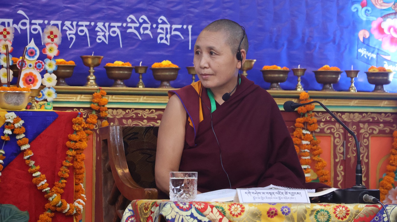 དུས་ཚོད་ ༡༠་༡༥ ནས་ ༡༡་༡༥ བར་ཚོགས་ཐུན་བཅུ་གསུམ་པ། ཇོ་ནང་མ་དགོན་རྟག་བརྟན་ཕུན་ཚོགས་ཆོས་འཁོར་གླིང་གི་དགེ་བཤེས་པ་སངས་འཕྲིན་ལས་མཆོག་གི་གཙོ་སྐྱོང་འོག རྡ་ས་རིགས་ལམ་སློབ་གཉེར་ཁང་གི་བློ་བཟང་རྒྱལ་མཚན་མཆོག་ནས། དཔྱད་རྩོམ་བརྗོད་གཞི་བཅུ་པ་མངོན་རྟོགས་རྒྱན་གྱི་སྐབས་བཞི་པ་ལས། གཟུགས་ལ་སོགས་ལ་མི་གནས་ཕྱིར། ཞེས་པ་ནས། དྲུག་ཏུ་ངེས་པར་རྟོགས་པར་བྱ། ཞེས་པའི་བར་ལས་བསྟན་པའི་སྦྱོར་བའི་སྒོ་ནས་མདོ་ལས་གསུང་ཚུལ་དང་བསྟན་བཅོས་མངོན་པར་རྟོགས་པའི་རྒྱན་གྱི་བསྟན་ཚུལ། འཕགས་ཡུལ་གྱི་སློབ་དཔོན་དང་བོད་ཀྱི་མཁས་པ་རྣམས་ཀྱིས་འགྲེལ་ཚུལ་བཅས་ཀྱི་སྒོ་ནས་གསུང་བཤད་དང་དེའི་ཐོག་བགྲོ་གླེང་གནང་།