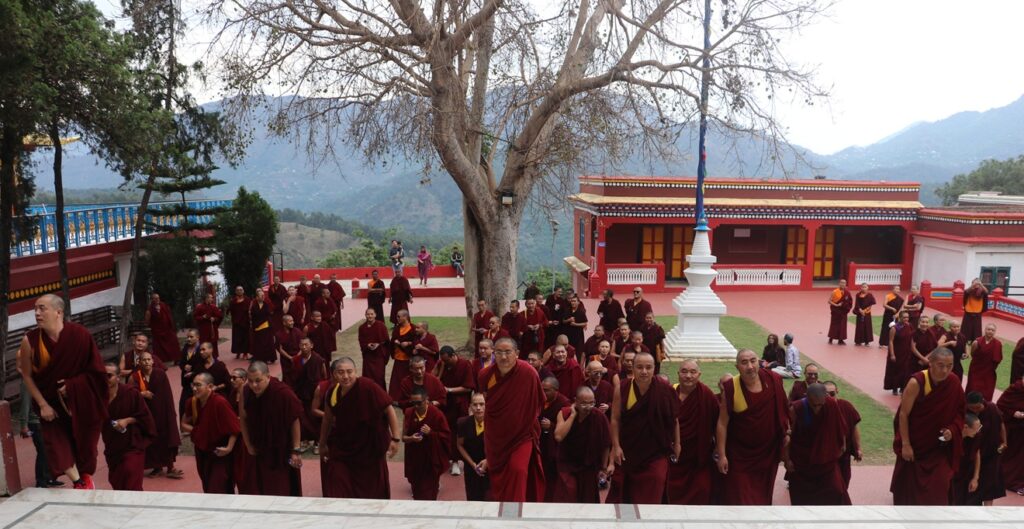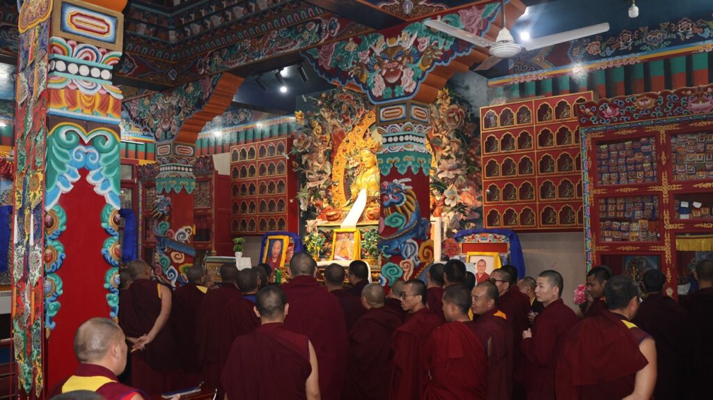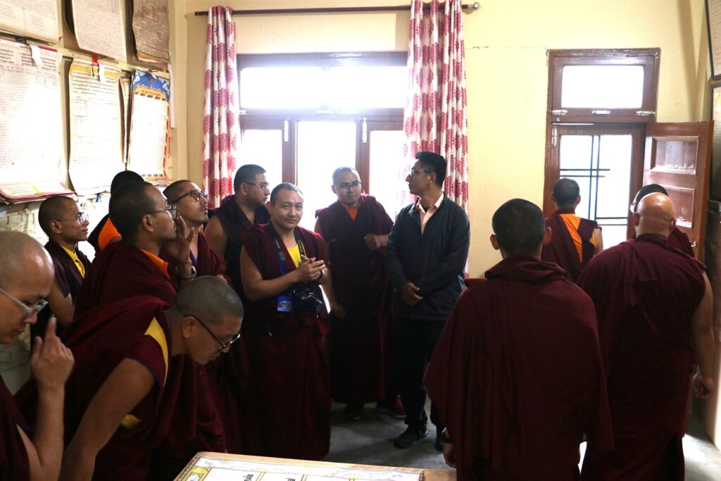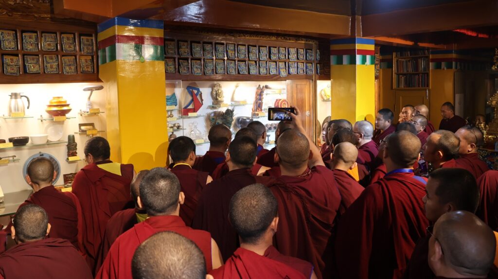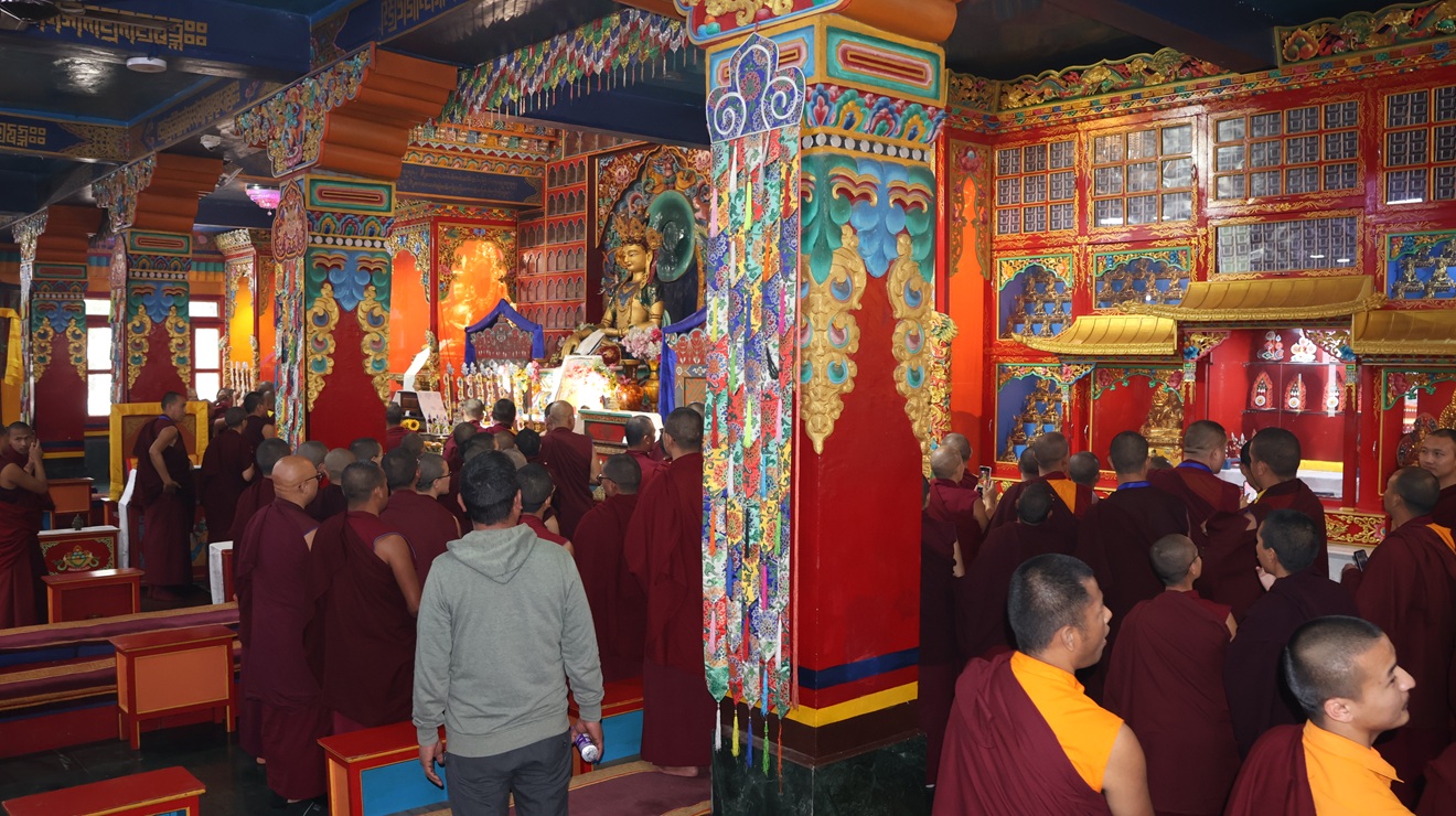 ཕྱི་དྲོར་༸གདན་ས་སྨན་རིའི་གླིང་གི་ཁོར་ཡུག་ ༸རྒྱལ་བ་སྨན་རིའི་ཁྲི་འཛིན་སོ་གསུམ་པའི་གཟིམ་ཆུང་འོད་འབར་རྗེས་དྲན་དད་རྟེན་ཁང་དང་། ༸རྒྱལ་བ་སྨན་རིའི་ཚོགས་ཁང་ཆེན་མོ། དབུས་གཡུང་དྲུང་བོན་འཛིན་སྐྱོང་ལྷན་ཚོགས་ཀྱི་ལས་ཁུངས་༸གཡུང་དྲུང་བོན་གྱི་དཔེ་མཛོད་ཁང་། མུ་ཁྲི་བཙད་པོ་ཞང་བོད་རིག་གཞུང་སློབ་གཉེར་ཁང་གི་རིག་པའི་གནས་ལྔའི་སྡེ་ཚན་གྱི་འགྲེམ་སྟོན། གསོ་རིག་འབུམ་བཞིའི་མཐོ་སློབ་སྨན་རིའི་གླིང་། བཙུན་དགོན་རདྣ་སྨན་གླིང་སོགས་དགོན་གྱི་ཕྱི་ནང་འཁོར་ཡུག་ལ་མཆོད་མཇལ་དང་གནས་གཟིགས་གནང་སྟེ་ཉིན་གསུམ་པའི་མཛད་རིམ་མཇུག་གྲུབ་ཡོད་པ་བཅས་གཡུང་དྲུང་བོན་དྲྭ་ཚིགས་གཙོ་སྒྲུབ་ཁང་ནས།