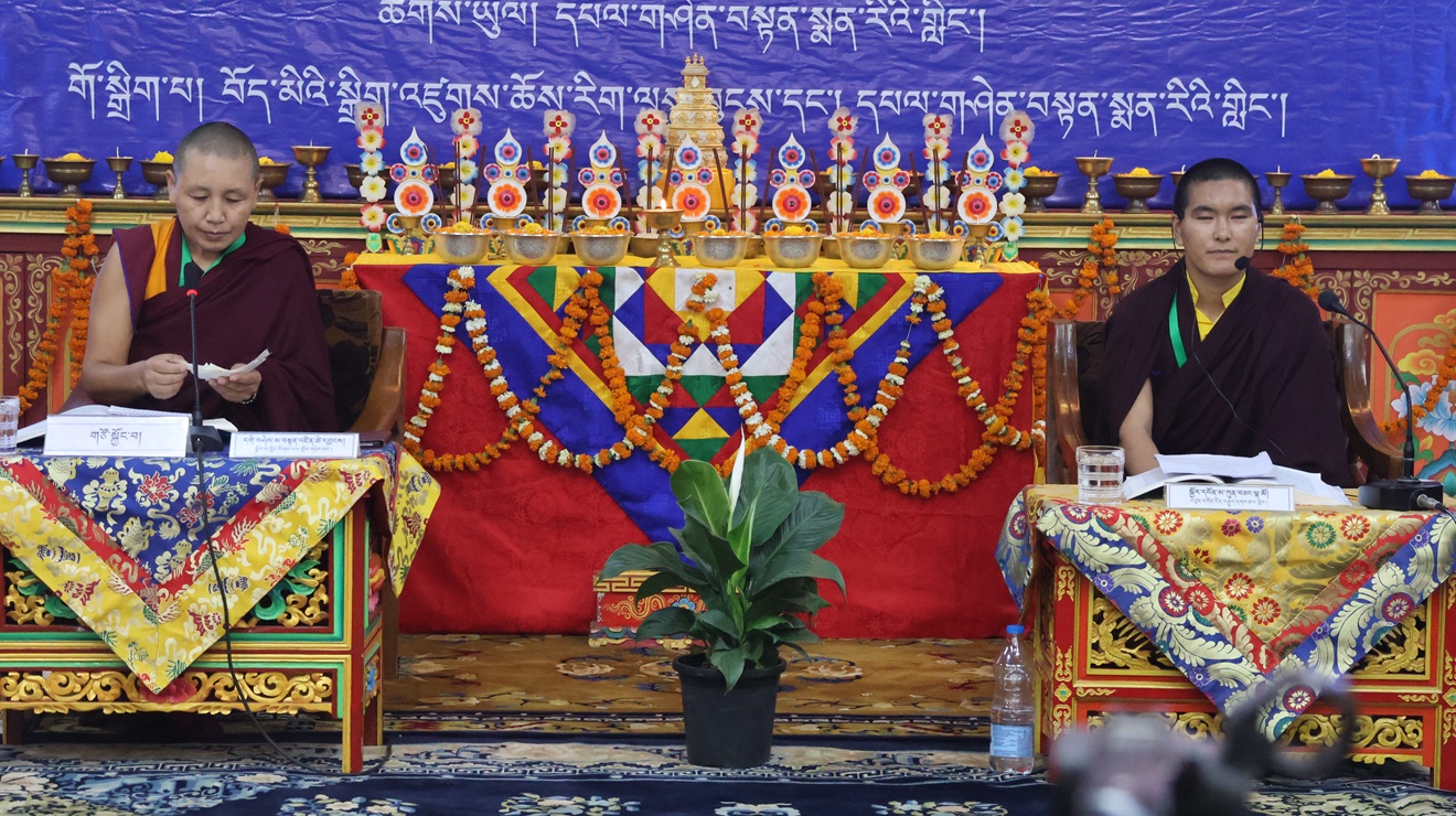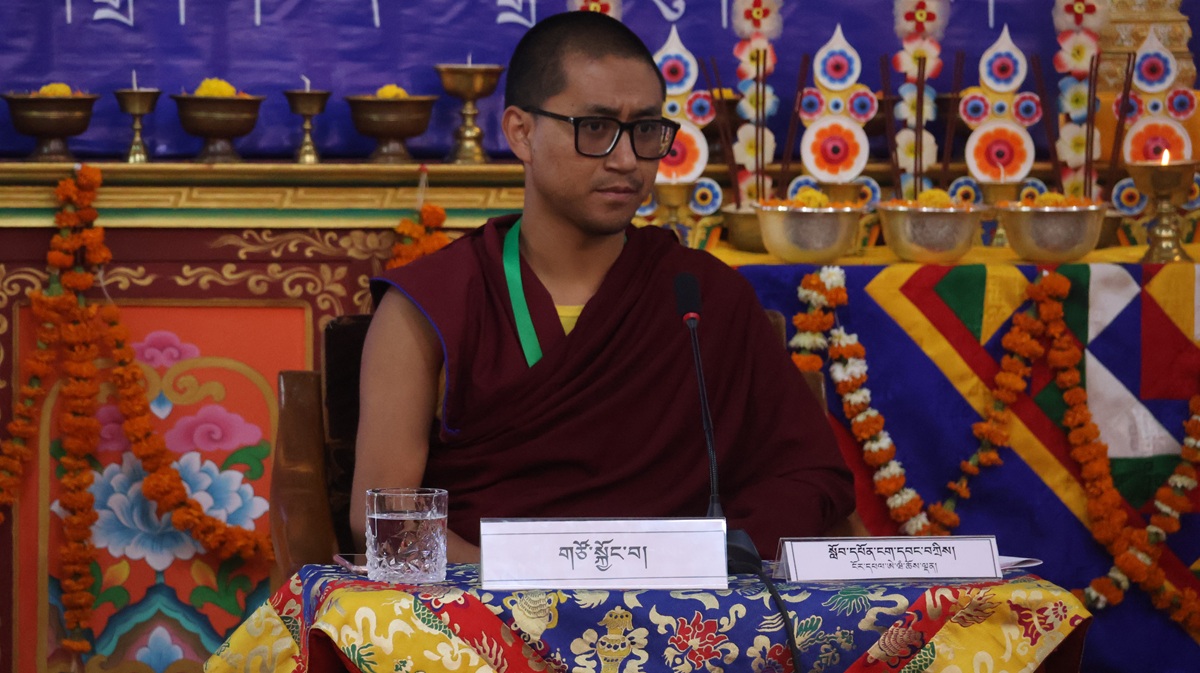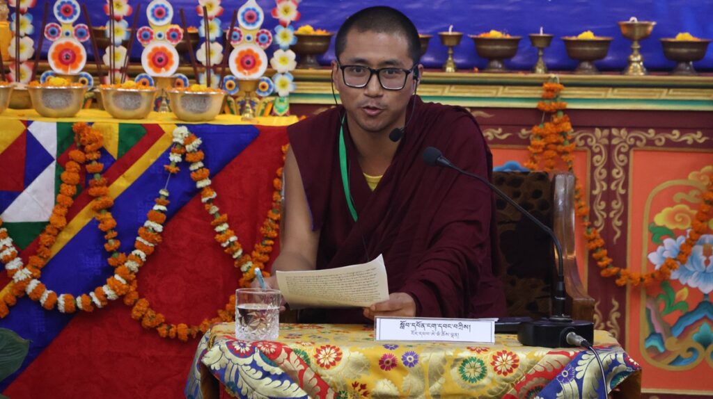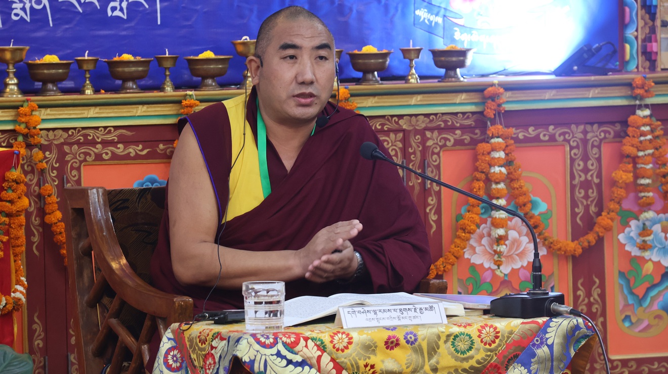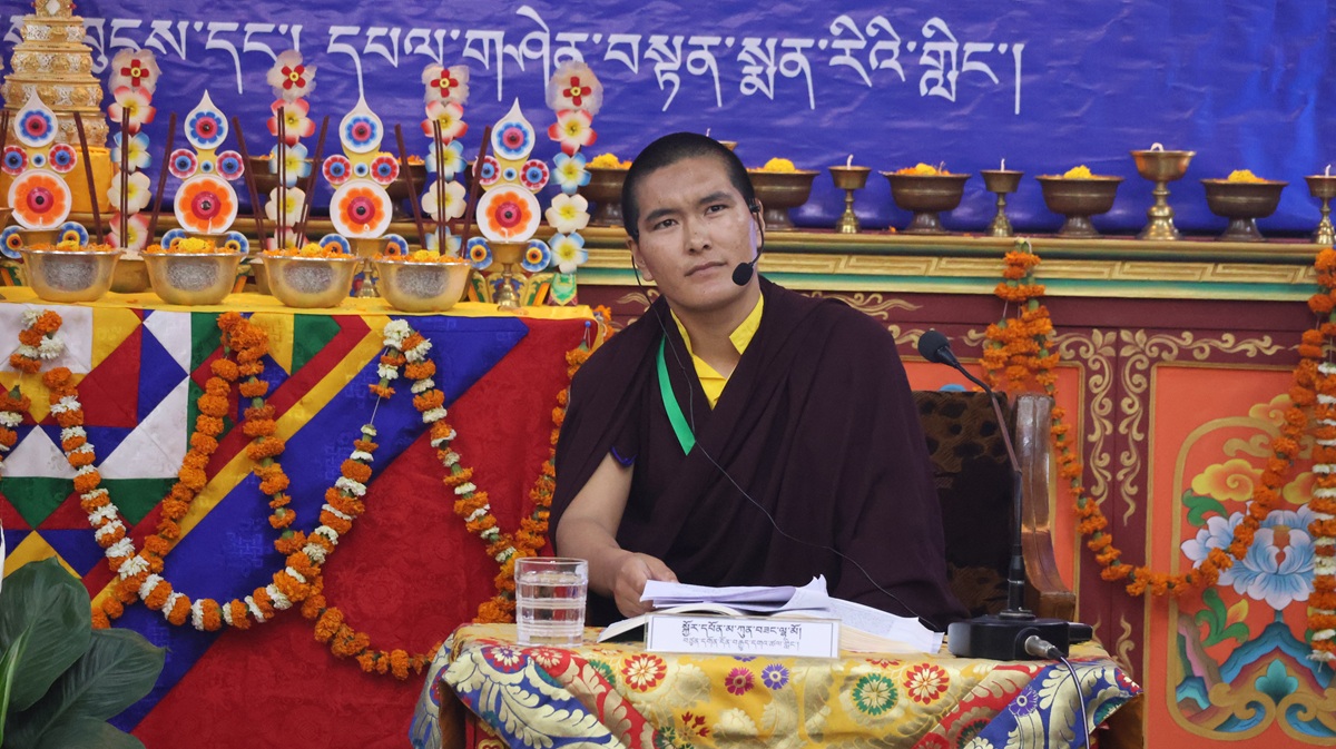 དུས་ཚོད་ ༡༡་༡༥ ནས་ཚོགས་ཐུན་བཅོ་བརྒྱད་པ། འོག་མིན་ཨོ་རྒྱན་སྨིན་གྲོལ་གླིང་གི་མཁན་པོ་ཟླ་བ་ཤར་པ་མཆོག་གི་གཙོ་སྐྱོང་འོག བཙུན་དགོན་མཚོ་རྒྱལ་བཤད་སྒྲུབ་གླིང་གི་སློབ་དཔོན་མ་པ་སངས་ལྷ་མོ་གུ་རུང་མཆོག་གིས་དཔྱད་རྩོམ་“མཐར་གྱིས་པའི་སྦྱོར་བའི་སྐོར་ལ་དཔྱད་པ་བློ་དམན་བྱིས་པའི་རི་མོ་”ཞེས་པའི་ཐོག་སྐབས་དྲུག་པ་མཐར་གྱིས་པའི་སྐོར་མདོ་དང་བསྟན་བཅོས་ནས་བསྟན་ཚུལ། མཚན་ཉིད། དབྱེ་བ། ས་མཚམས་ལ་བཞེད་པ་མི་འདྲ་ཚུལ། རྟོགས་པ་བརྟན་པར་བྱེད་ཚུལ། བརྟན་པ་ཐོབ་པའི་ཚད། རྣམ་པ་གོ་རིམ་ངེས་ཅན་དུ་སྒོམ་པའི་དོན། ཉམས་ལེན་གཅིག་ལ་ཀུན་བསྡུས་ཚུལ། མཐར་གྱིས་པའི་སྦྱོར་བའི་དགོས་པ་བཅས་ཀྱི་སྒོ་ནས་གསུང་བཤད་དང་དེའི་ཐོག་བགྲོ་གླེང་གནང་གྲུབ་མཚམས་ཉིན་གུང་གསོལ་ཚིགས་བར་གསེང་གནང་ཞིང་།
