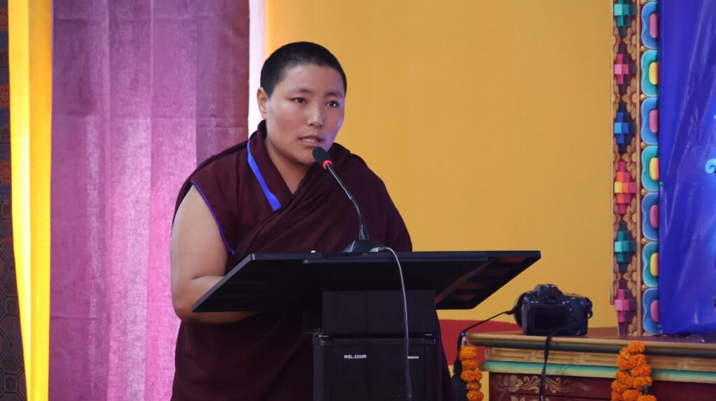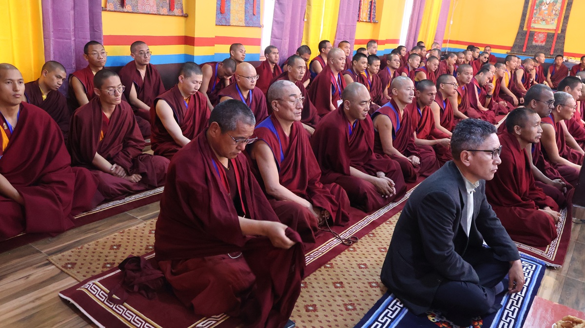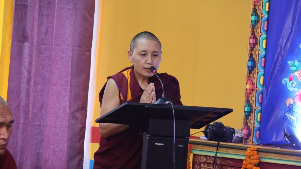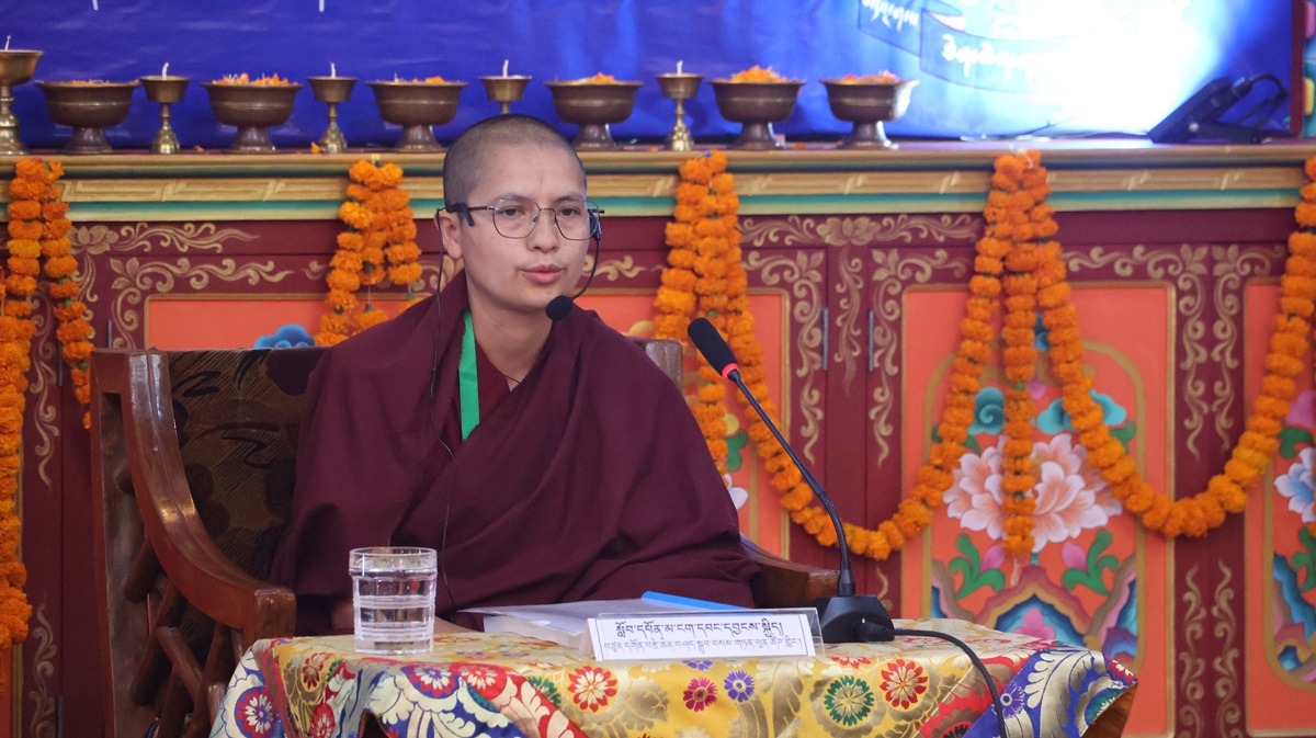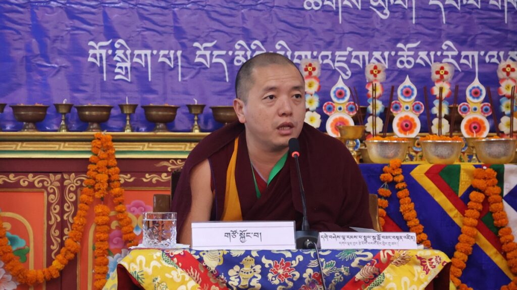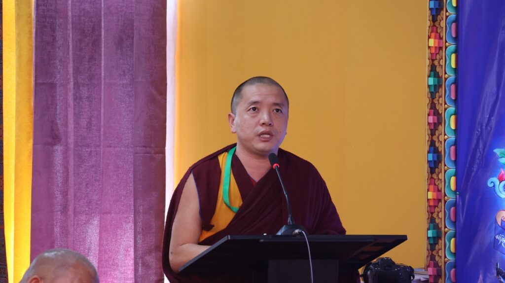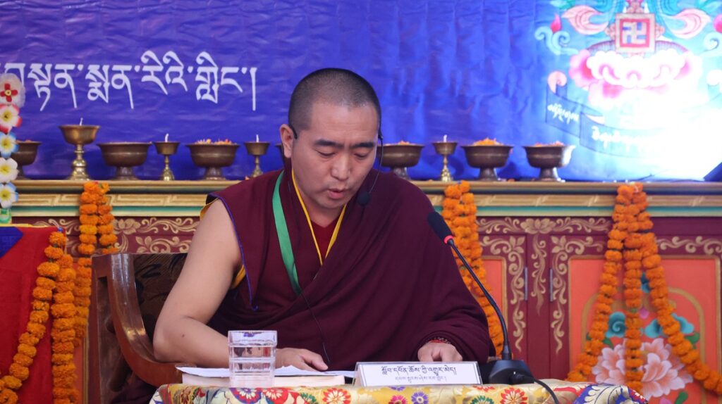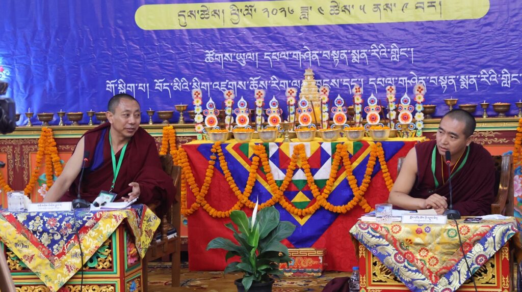 ཚོགས་ཐུན་ཉི་ཤུ་རྩ་གཅིག་པ། དགའ་ལྡན་བྱང་རྩེ་ཐོས་བསམ་ནོར་གླིང་གྲྭ་ཚང་གི་དཔེ་ཁྲིད་དགེ་རྒན་ཕུལ་སྒྲུབ་སྤྲུལ་སྐུ་བློ་བཟང་བསྟན་འཛིན་མཆོག་གི་གཙོ་སྐྱོང་འོག བཙུན་དགོན་བརྩེ་ཆེན་བཤད་སྒྲུབ་བསམ་གཏན་ཕུན་ཚོགས་གླིང་གི་སློབ་དཔོན་མ་ངག་དབང་དབྱངས་སྐྱིད་མཆོག་གིས་དཔྱད་རྩོམ་“ལོངས་སྐུའི་མཚན་དཔེ་”ཞེས་པའི་ཐོག སྤྱིར་སྐུའི་རྣམ་བཞག་བཤད་པ་དང་། བརྗོད་བྱ་དངོས་དང་། མཇུག་ཏུ་བསྔོ་བ་གསུམ་གྱི་སྒོ་ནས་གསུང་བཤད་དང་དེའི་ཐོག་བགྲོ་གླེང་གནང་།